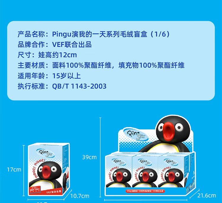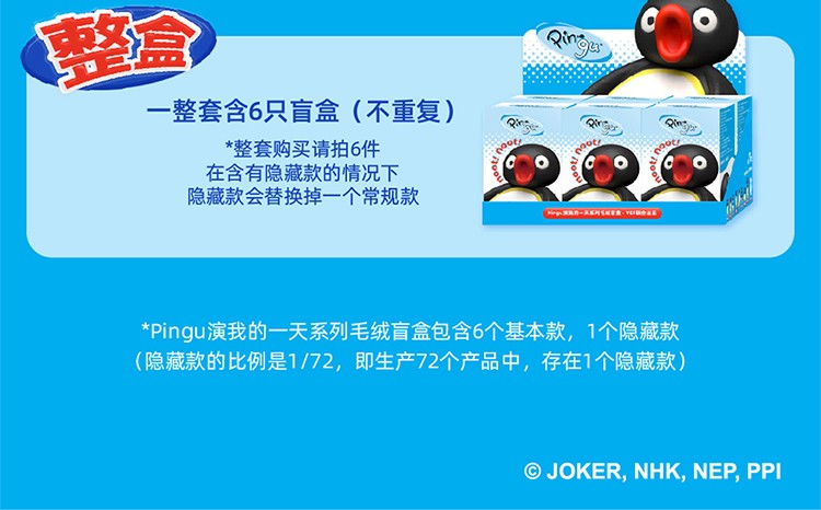 Pingu正版授权演我的一天系列毛绒盲盒生日礼物单个盲盒随机发(拍6个发整盒)