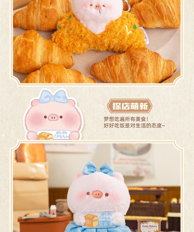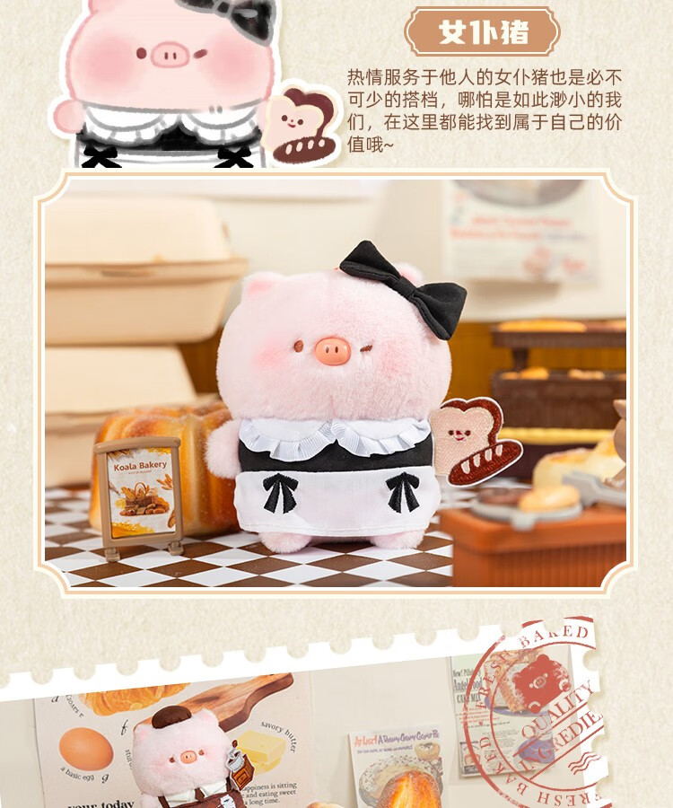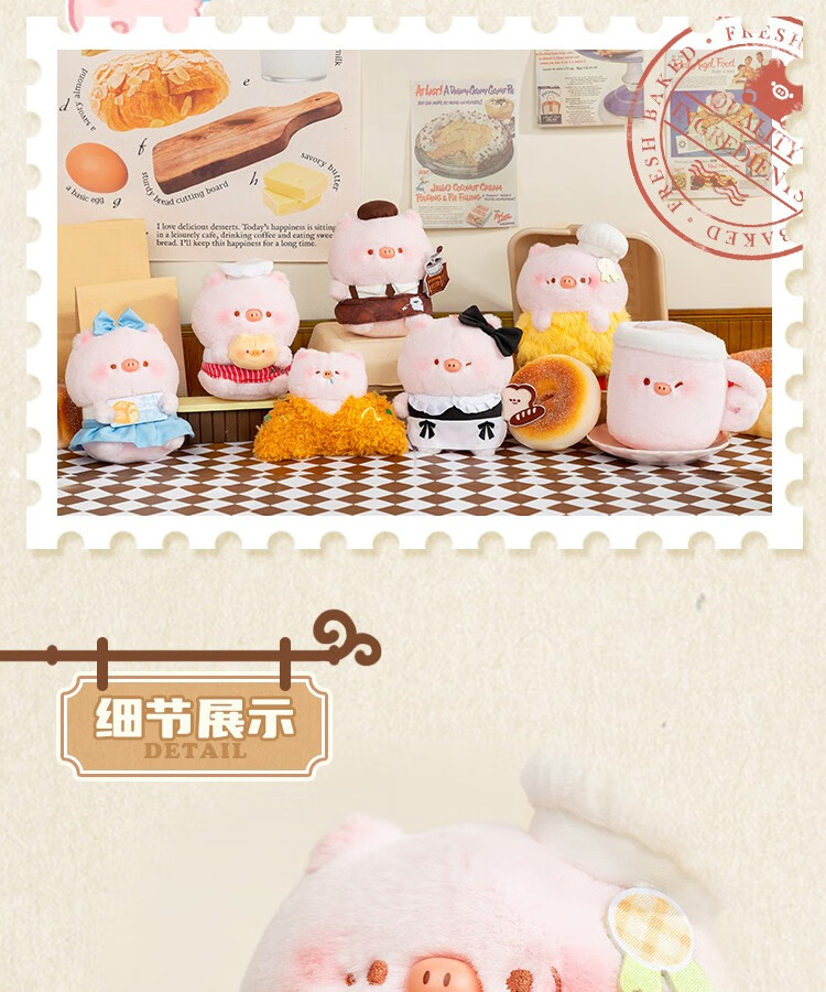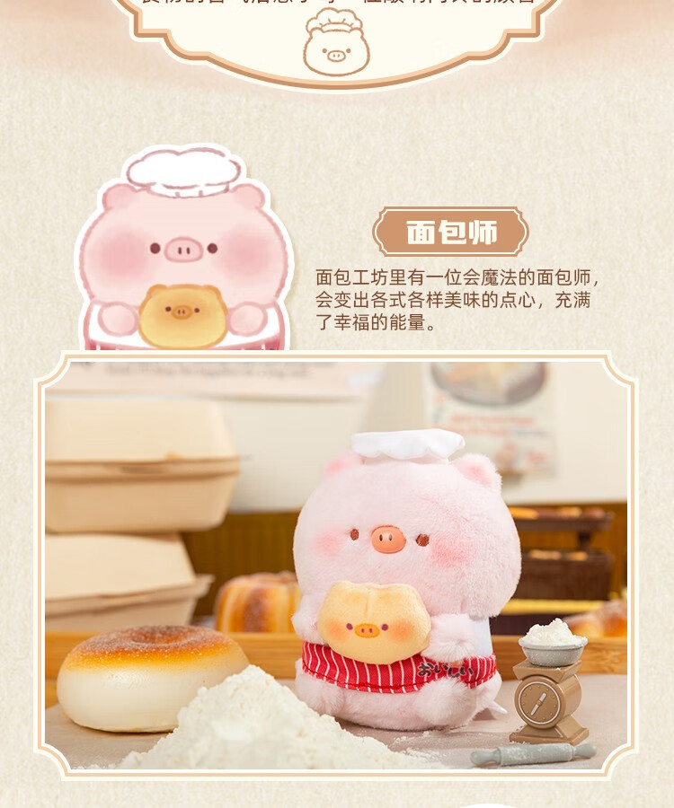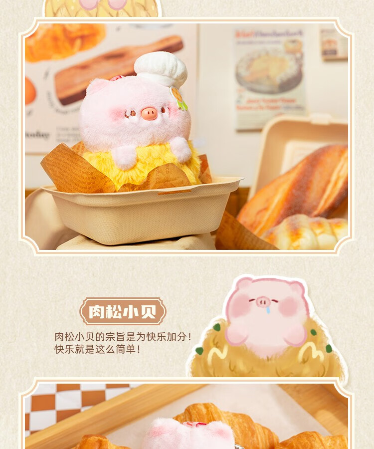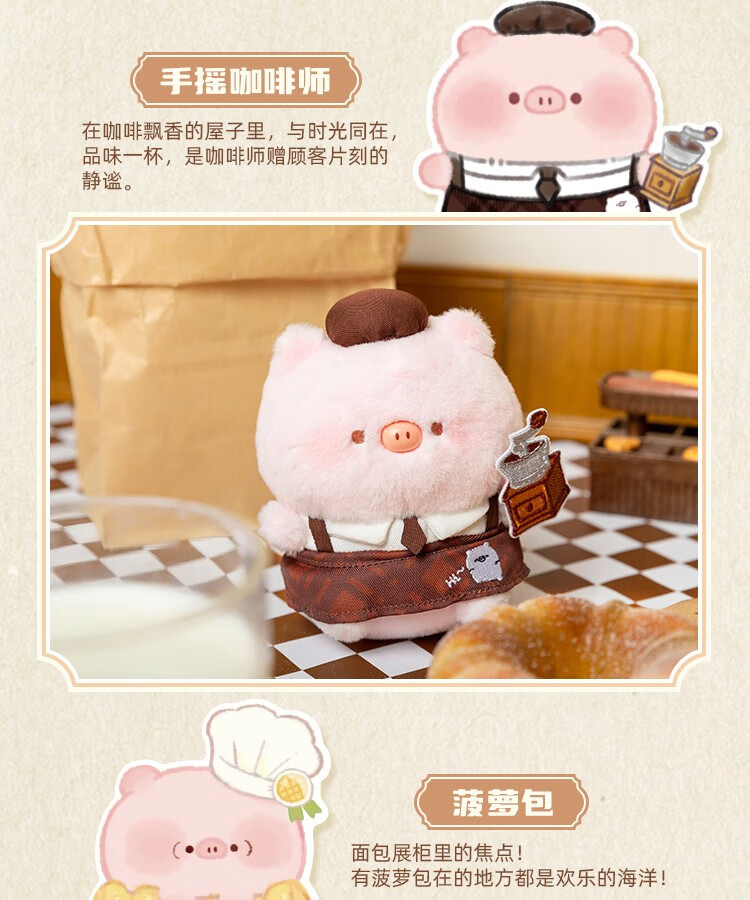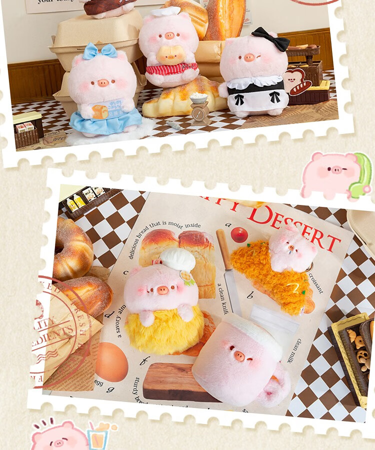 娃岛联萌甜小猪面包工坊系列毛绒盲盒生日礼物送朋友单个盲盒随机发(拍6个发整盒)九九