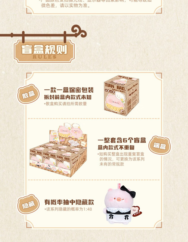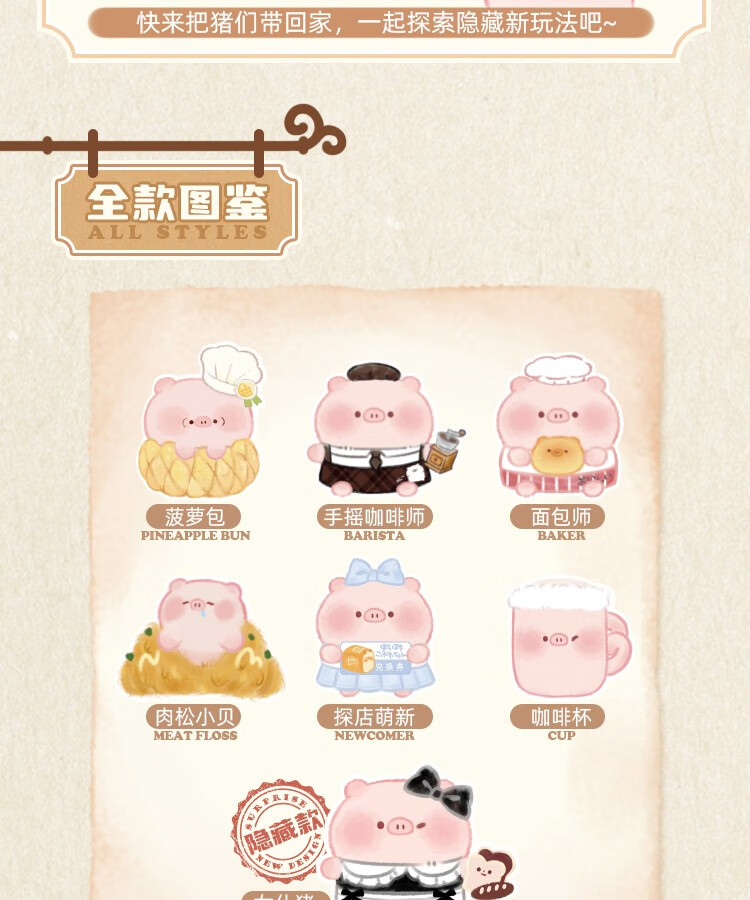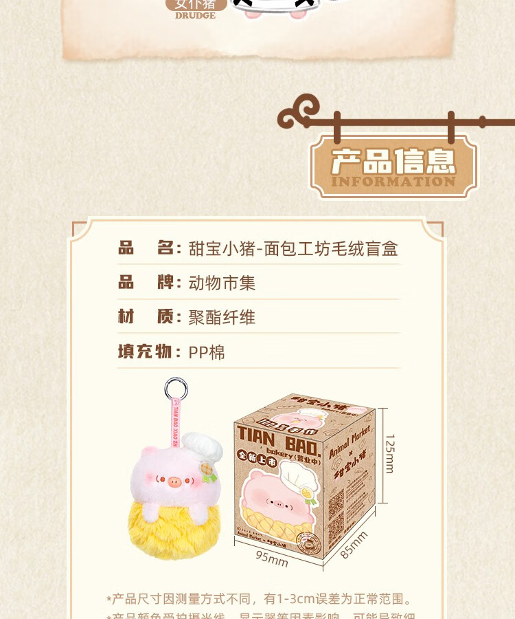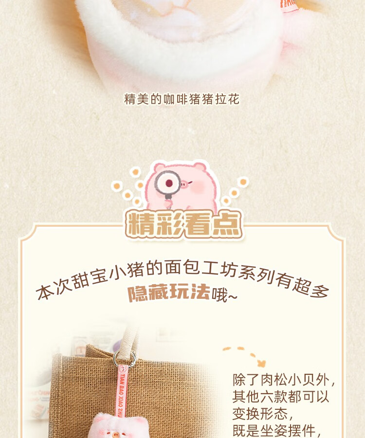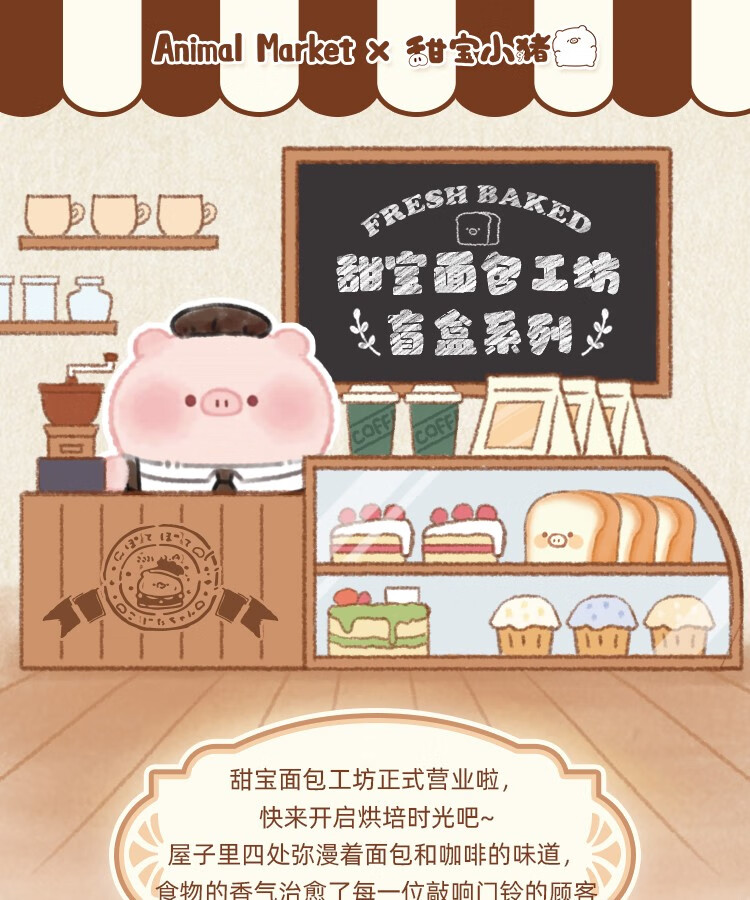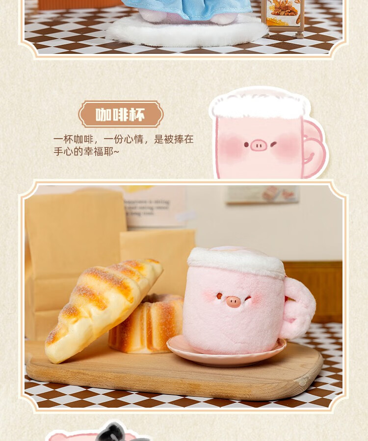 娃岛联萌甜小猪面包工坊系列毛绒盲盒生日礼物送朋友单个盲盒随机发(拍6个发整盒)九九