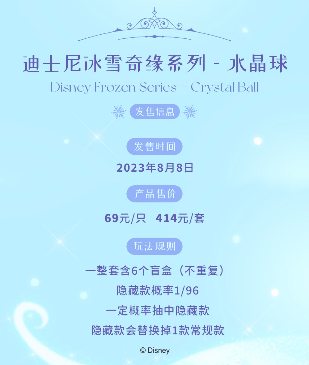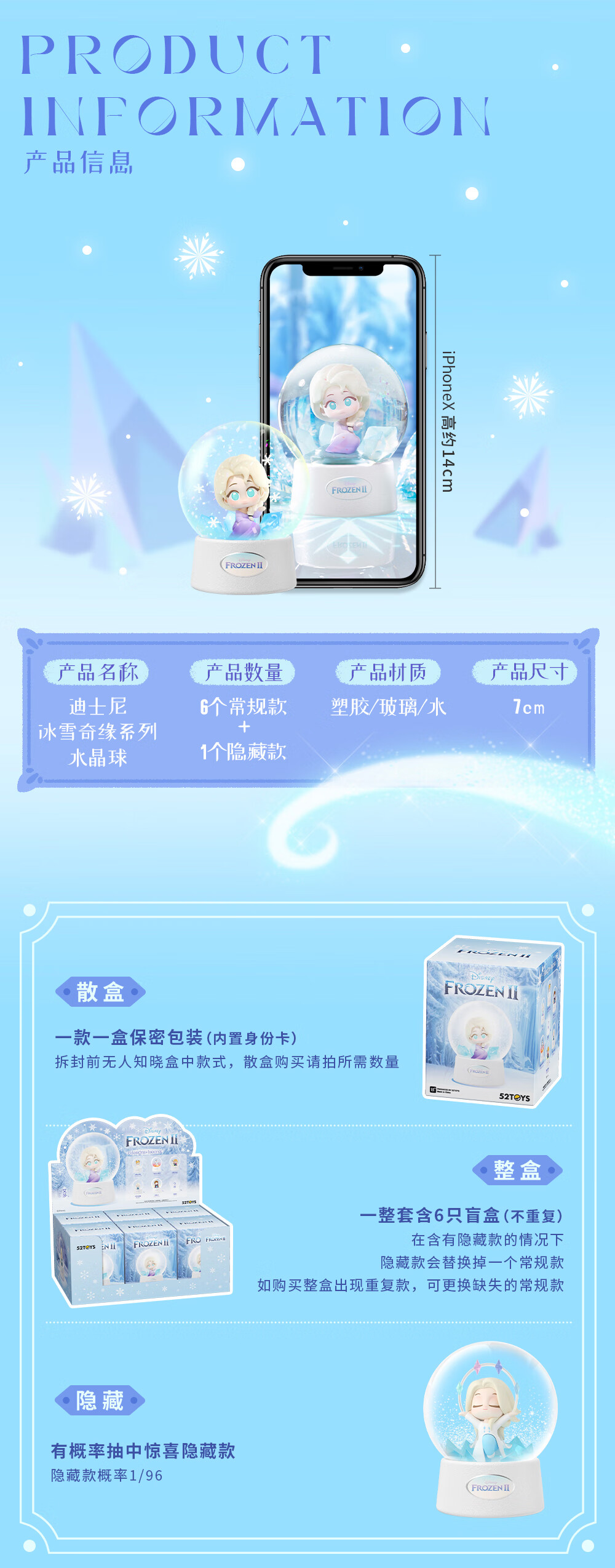 迪士尼冰雪奇缘系列水晶球动漫潮玩摆件手办女孩生日礼物女生单只盲盒