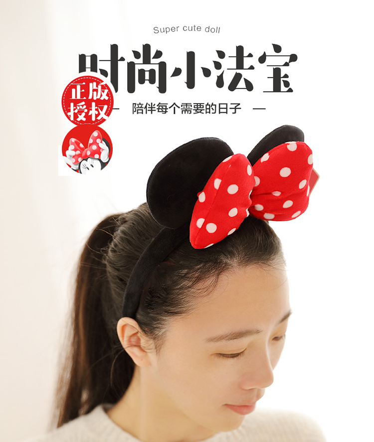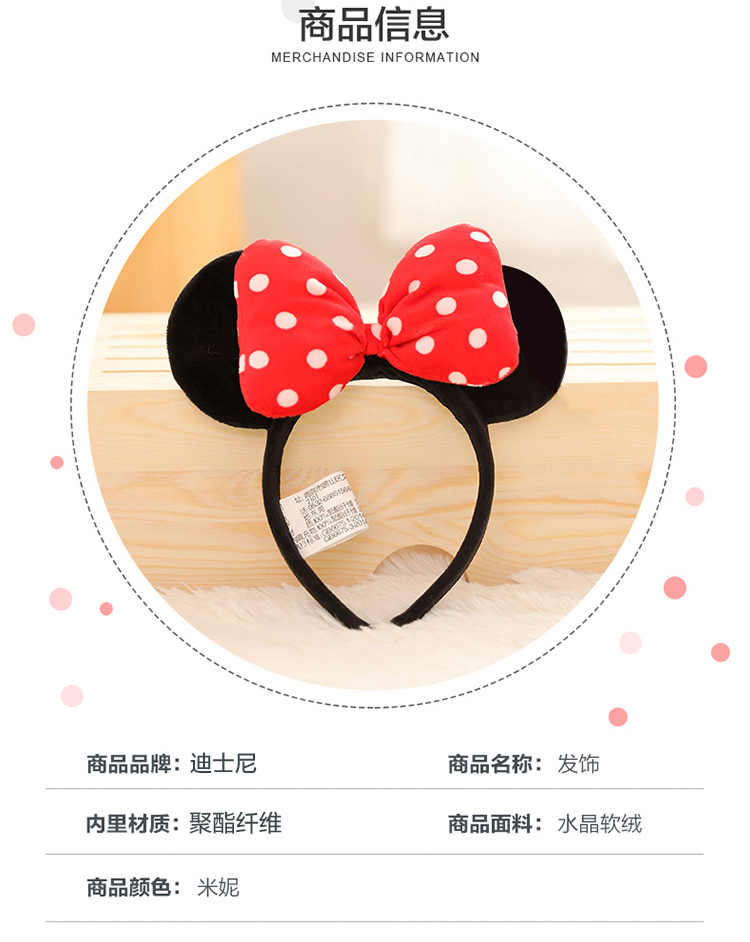 迪士尼(Disney)毛绒玩具发箍正版发饰卡通头饰米奇老鼠饰品男女孩演出道具送女友老婆女孩生日礼物女生闺蜜创意礼品米妮蝴蝶结头箍