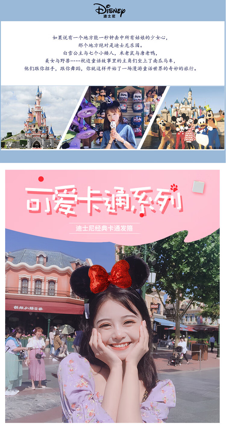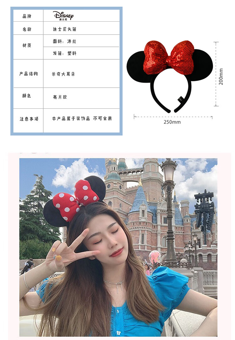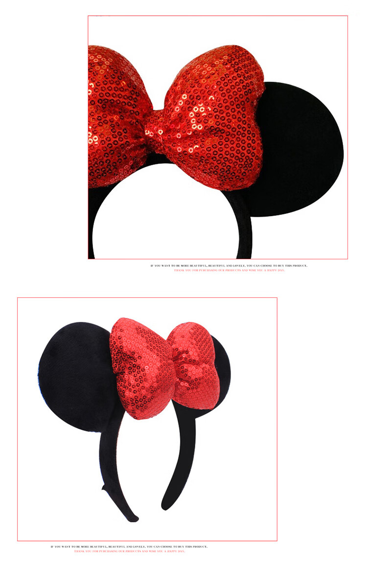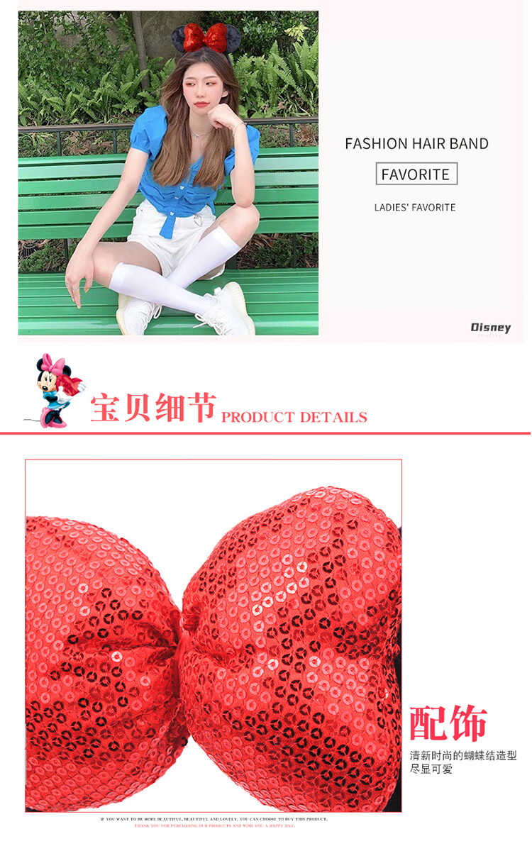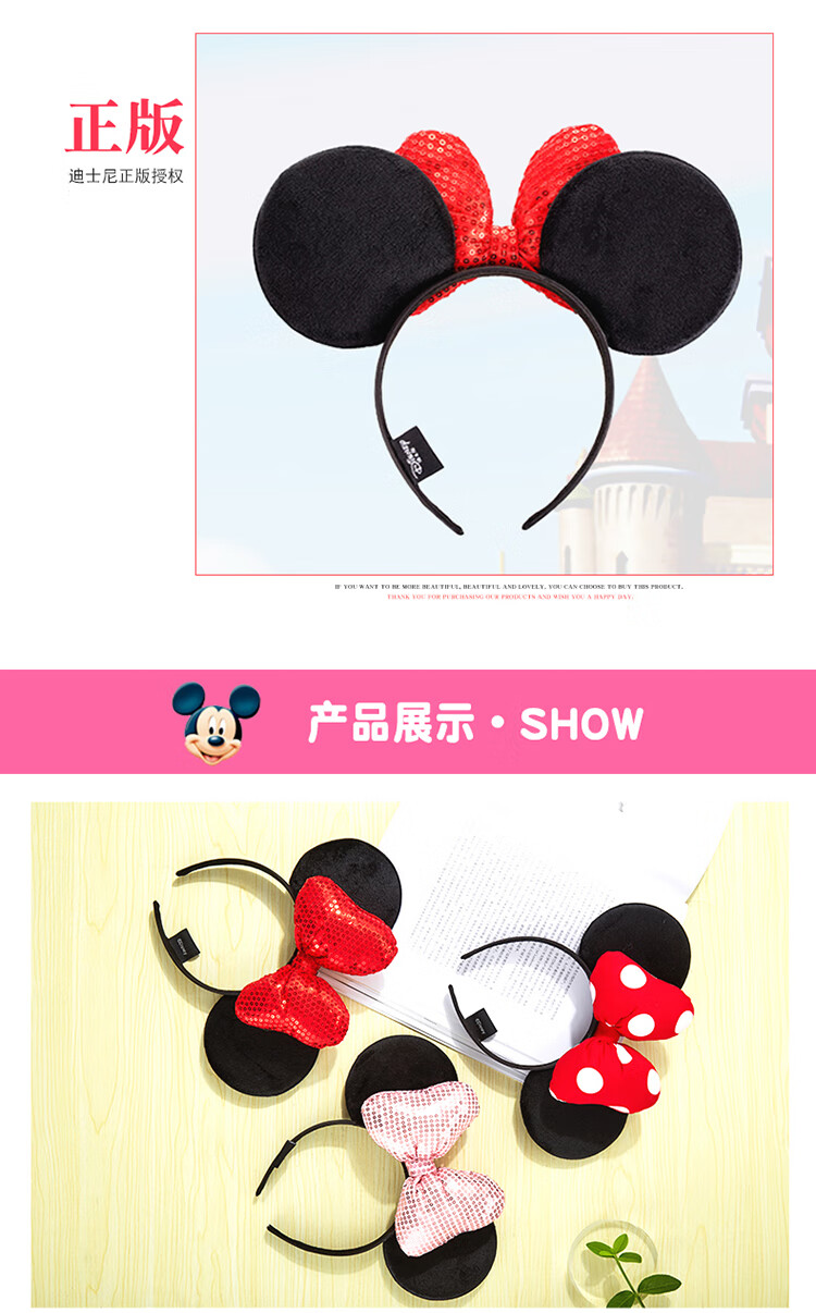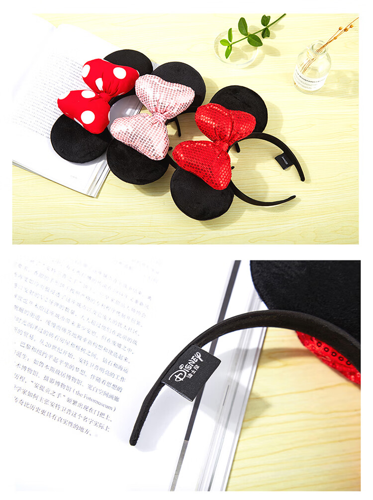 迪士尼(Disney)毛绒玩具发箍正版发饰卡通头饰米奇老鼠饰品男女孩演出道具送女友老婆女孩生日礼物女生闺蜜创意礼品红色亮片