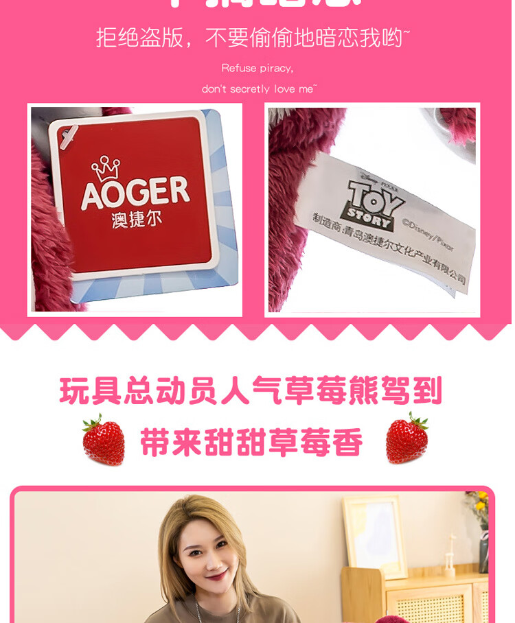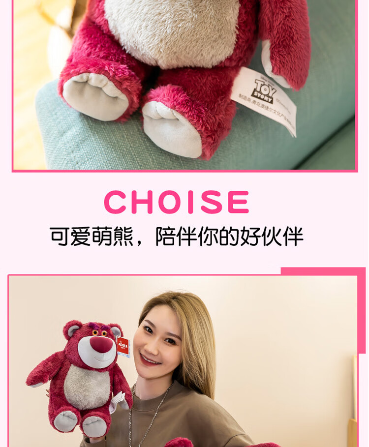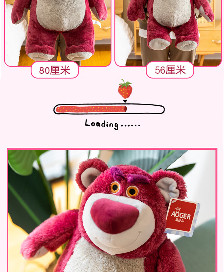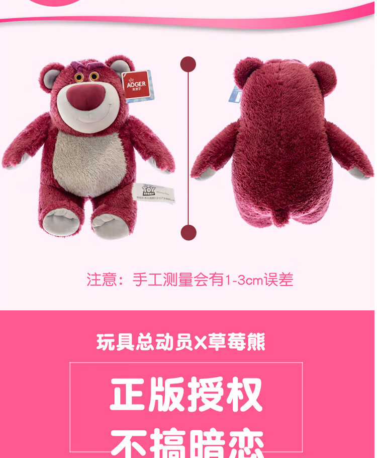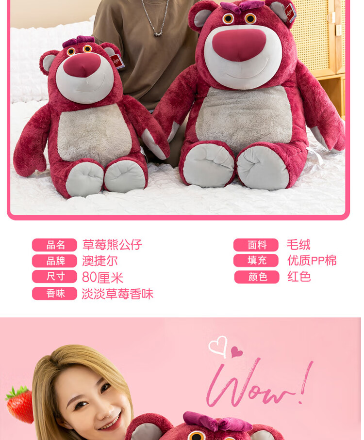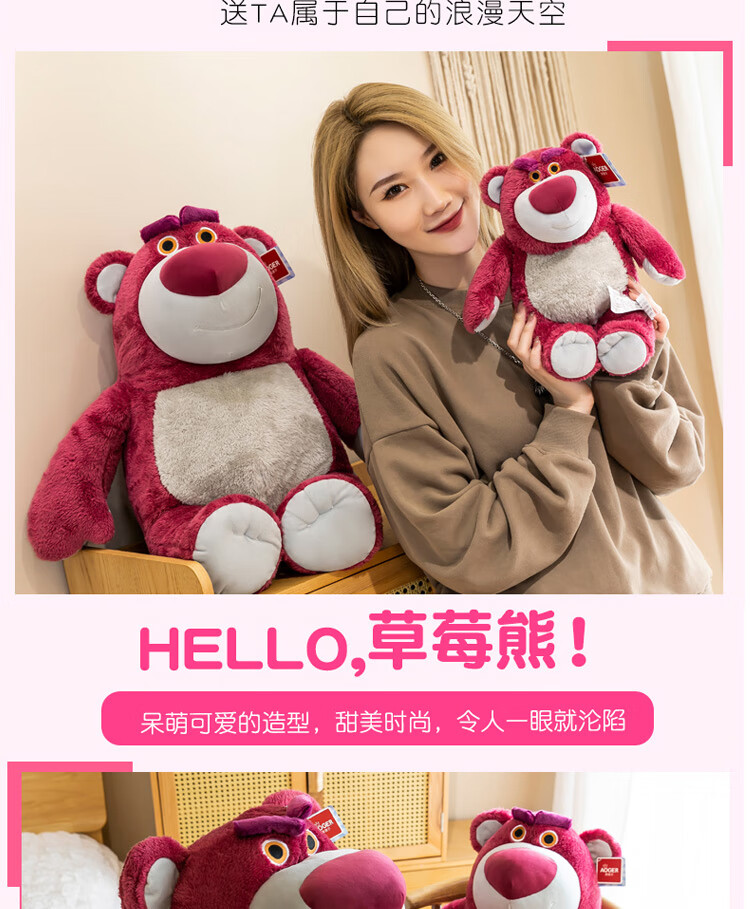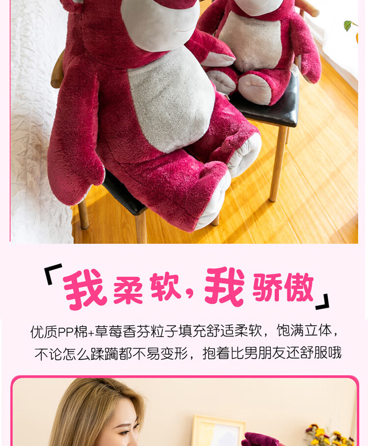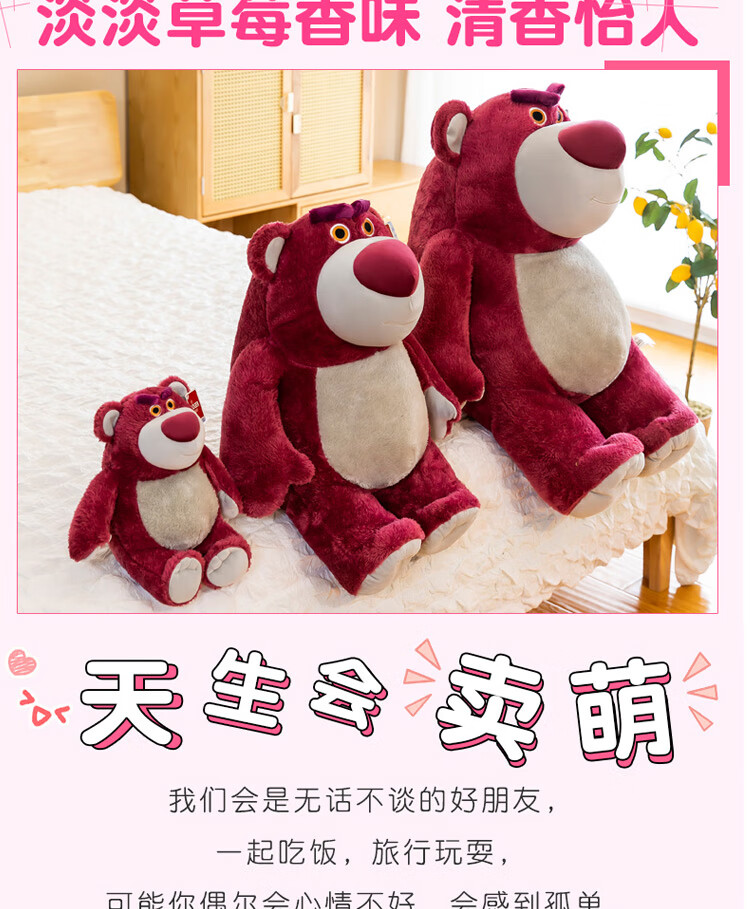 迪士尼(Disney)玩具总动员草莓熊男女孩毛绒玩具公仔玩偶抱抱熊送女友老婆女孩生日礼物女生闺蜜创意礼品靠枕抱枕布娃娃24号芬芳款80cm