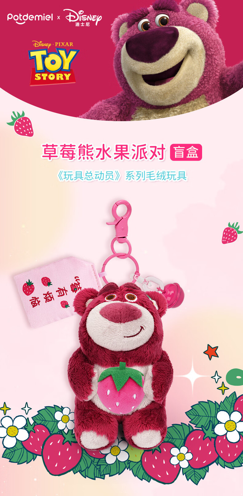 迪士尼(Disney)盲盒手办娃娃公仔男女孩毛绒玩具潮玩解压玩偶摆件挂件送女友老婆女孩生日礼物女生闺蜜礼品玩具总动员草莓熊水果派对盲盒