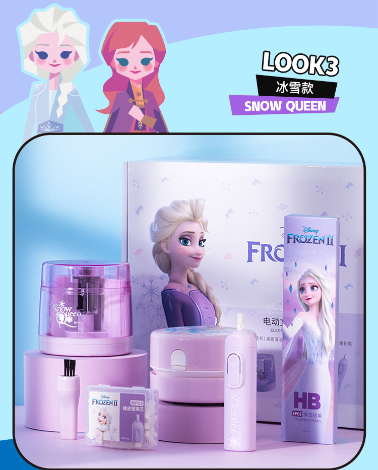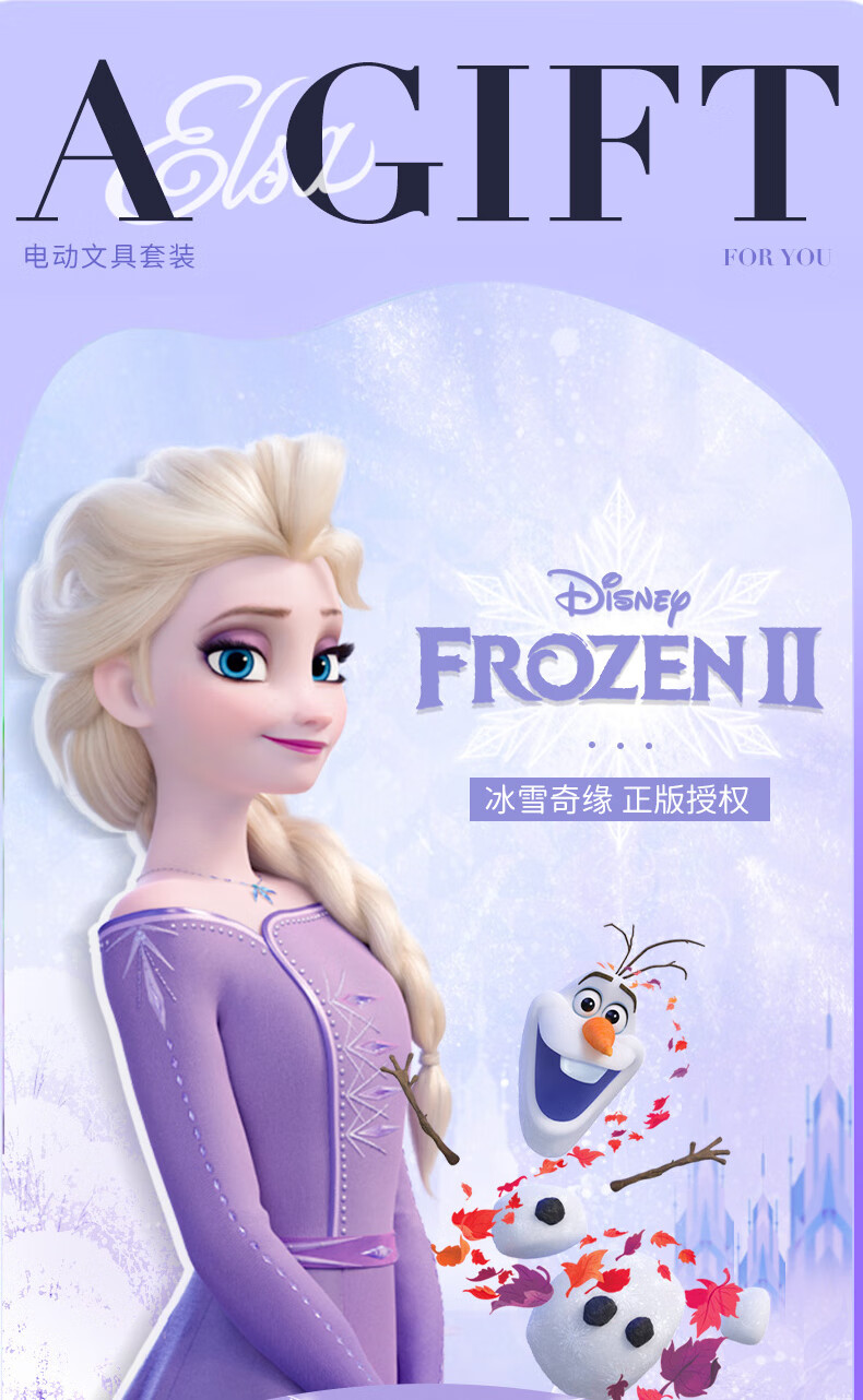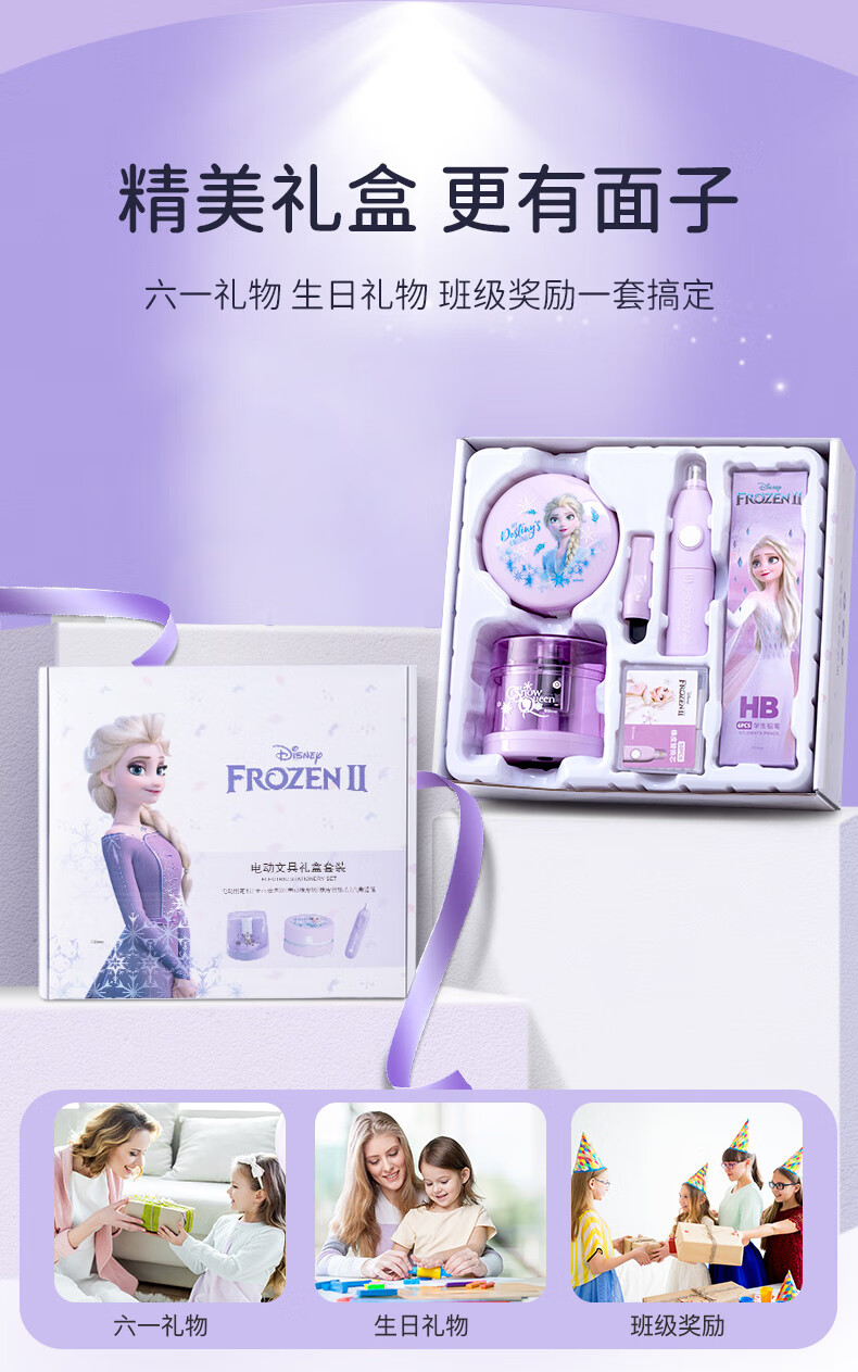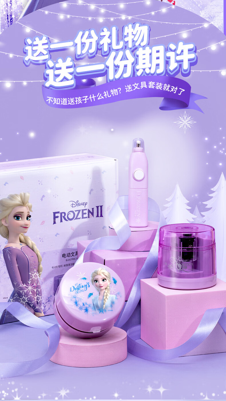 具迪士尼(Disney)电动文具套装5件套电动削笔机橡皮擦开学大礼包小学文具礼盒儿童生日礼物冰雪奇缘E0269F