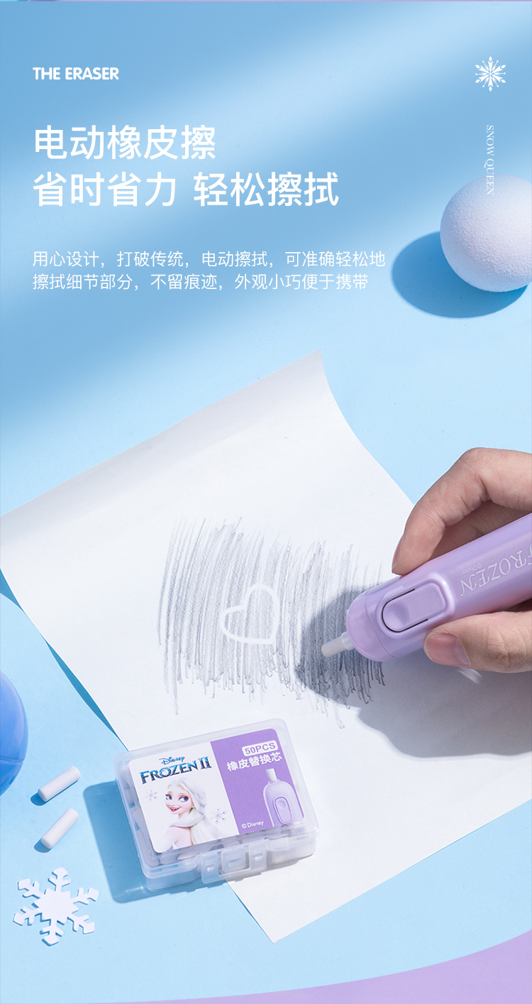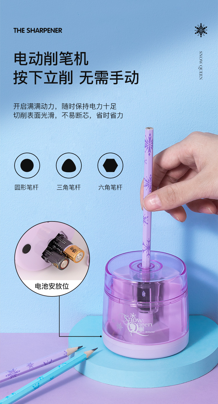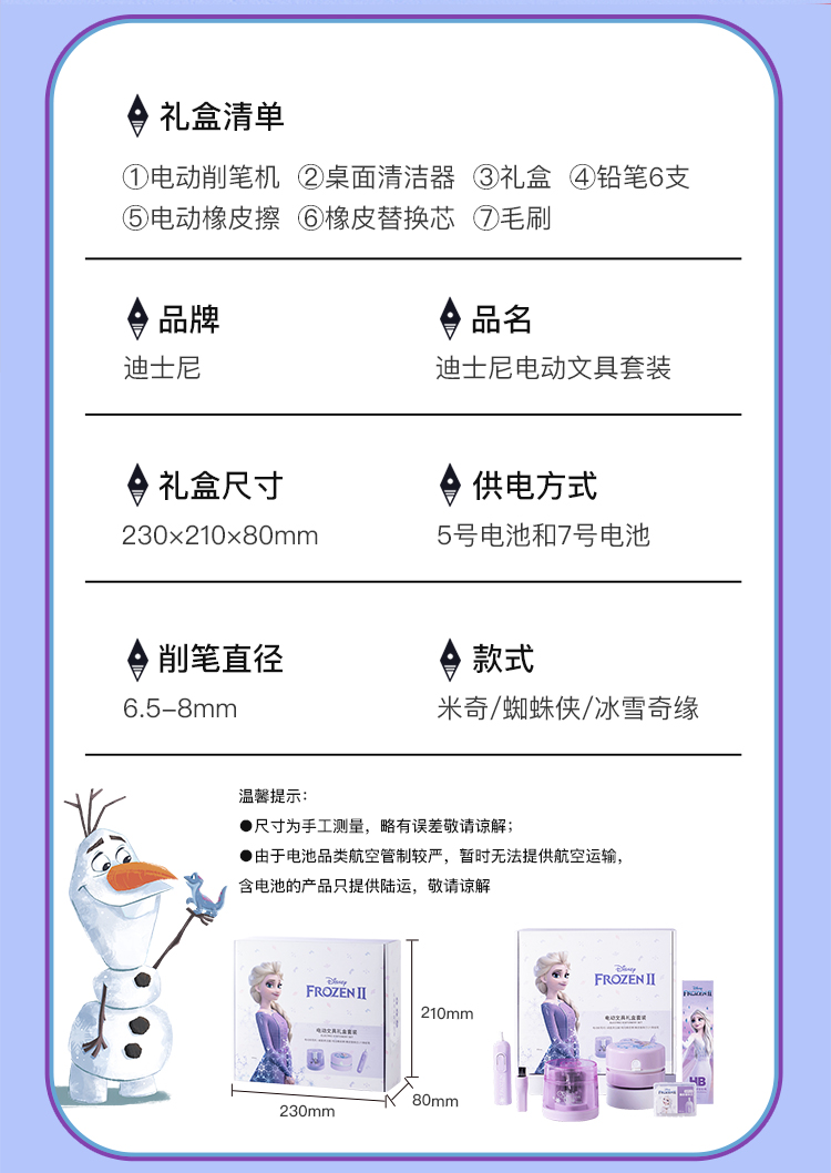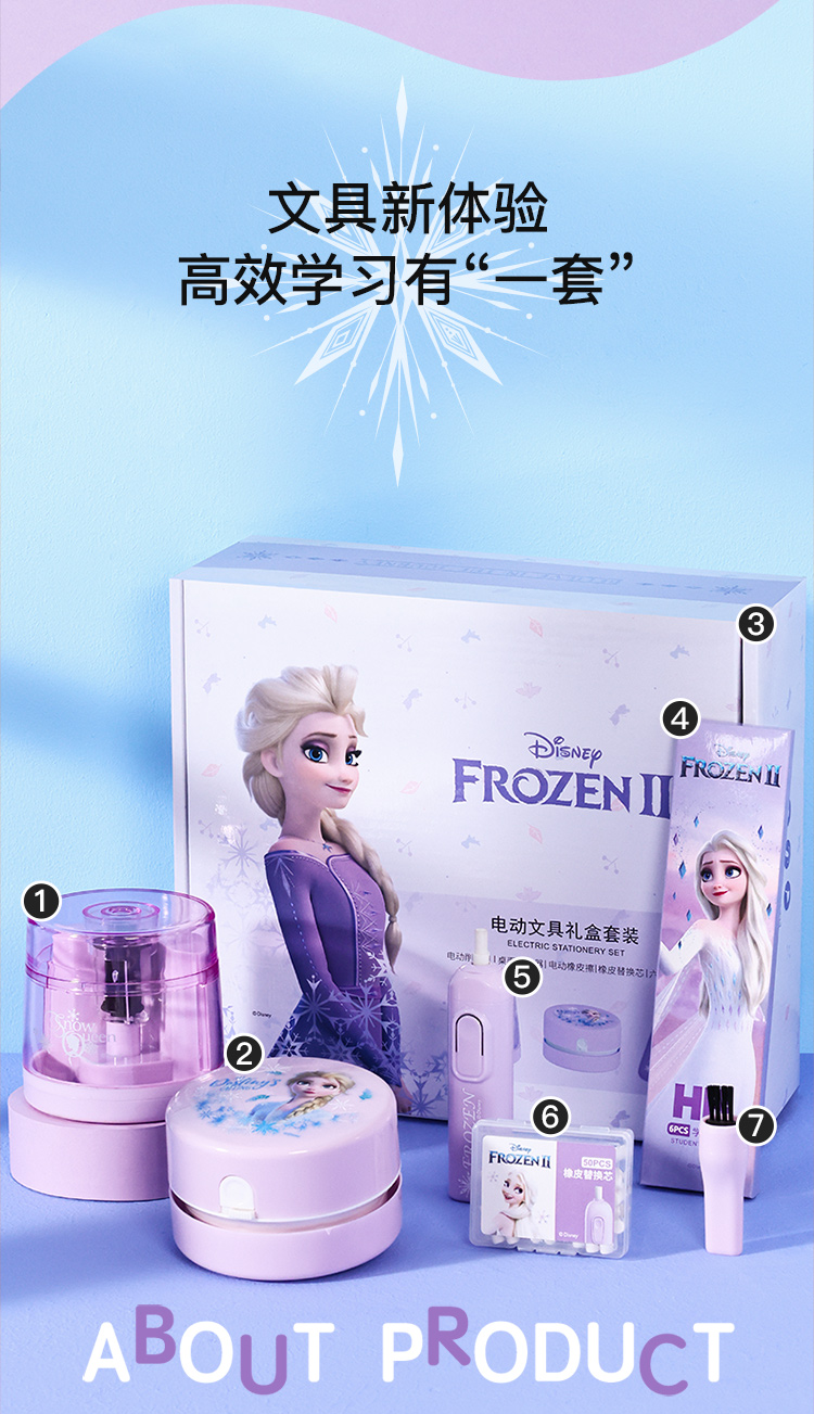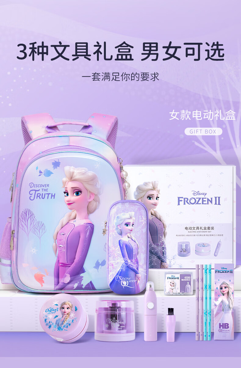 具迪士尼(Disney)电动文具套装5件套电动削笔机橡皮擦开学大礼包小学文具礼盒儿童生日礼物冰雪奇缘E0269F