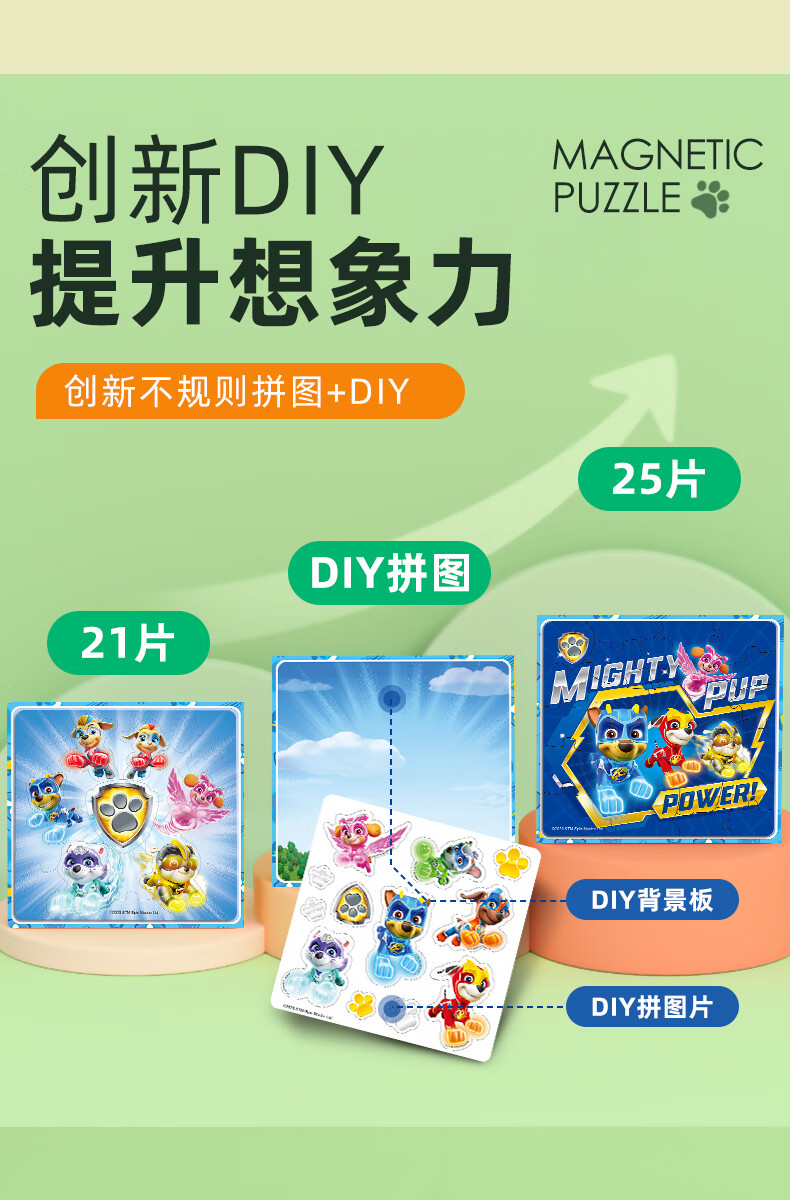 大眼小娃汪汪队勇敢出发52片儿童磁性拼图磁力玩具3-6岁男女