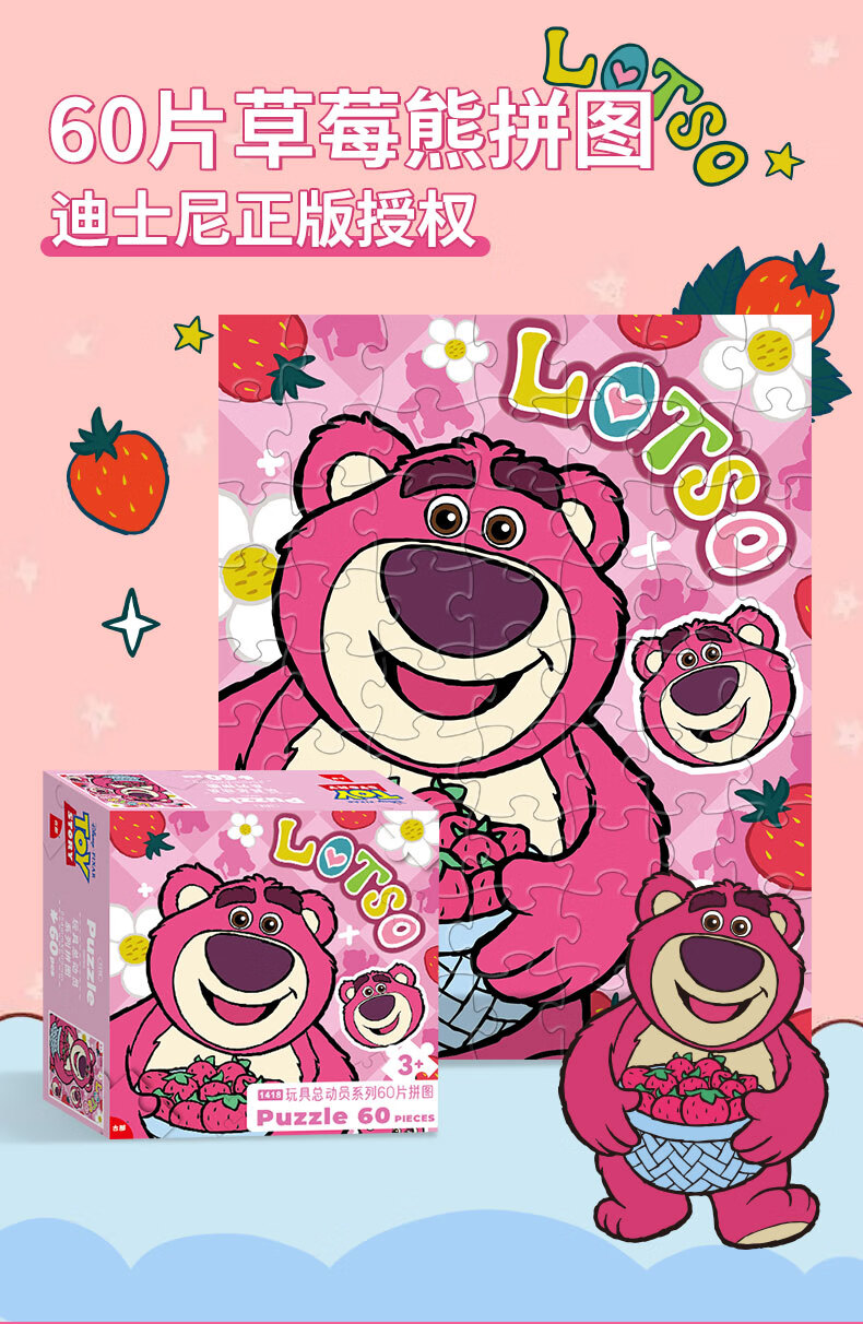 迪士尼60片儿童拼图玩具草莓熊拼图(古部盒装拼图)11DF0