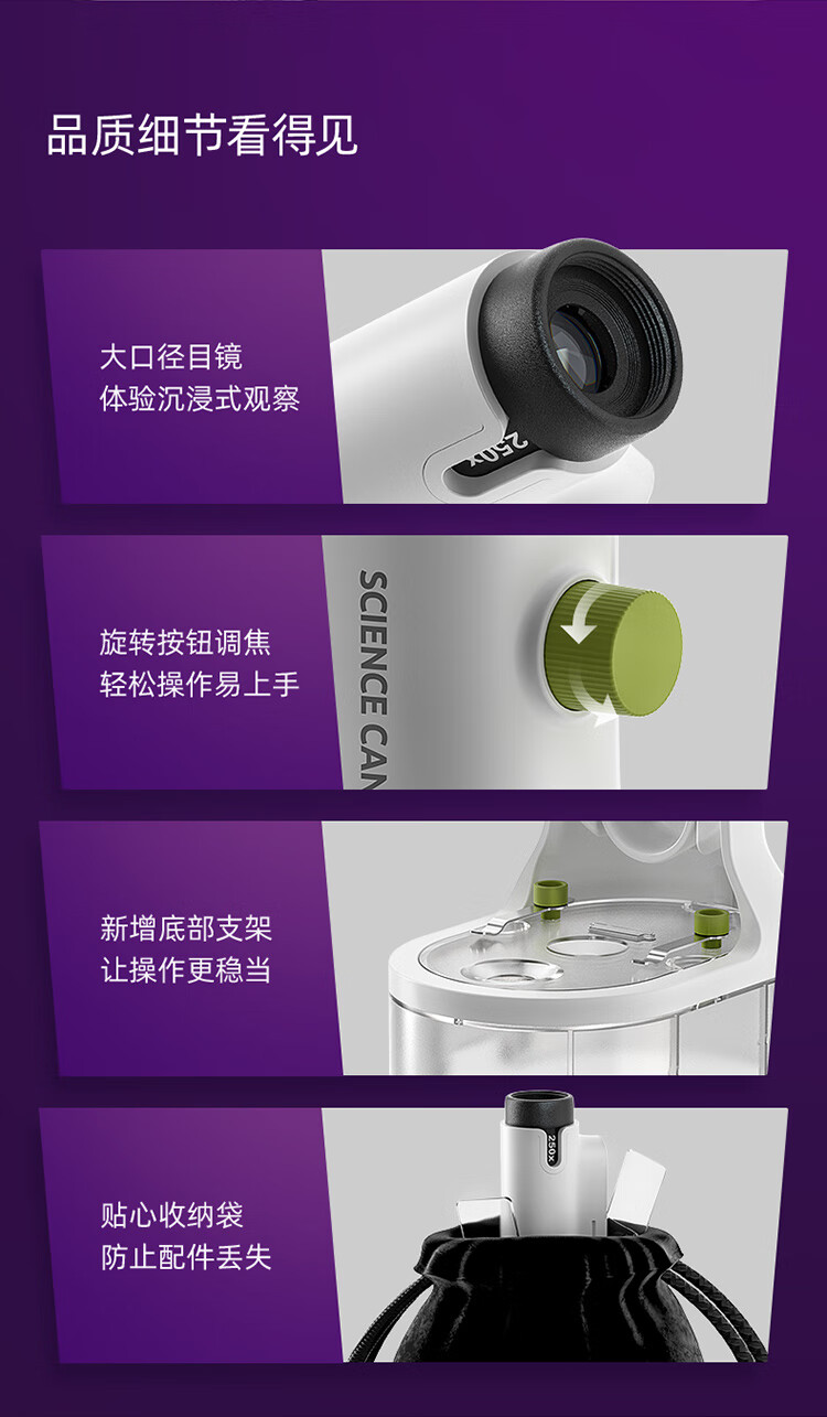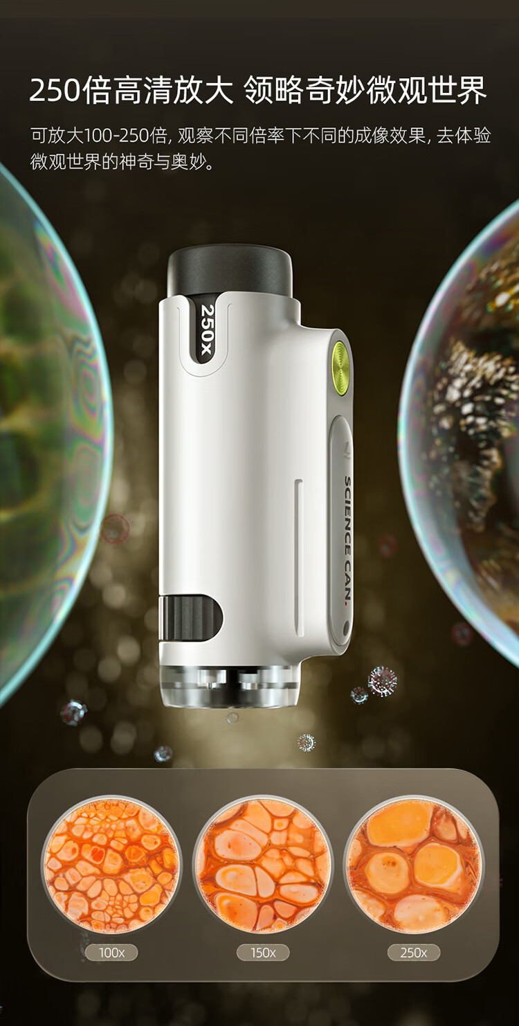 科学罐头(Sciencecan)显微镜儿童玩具学生便携式男女