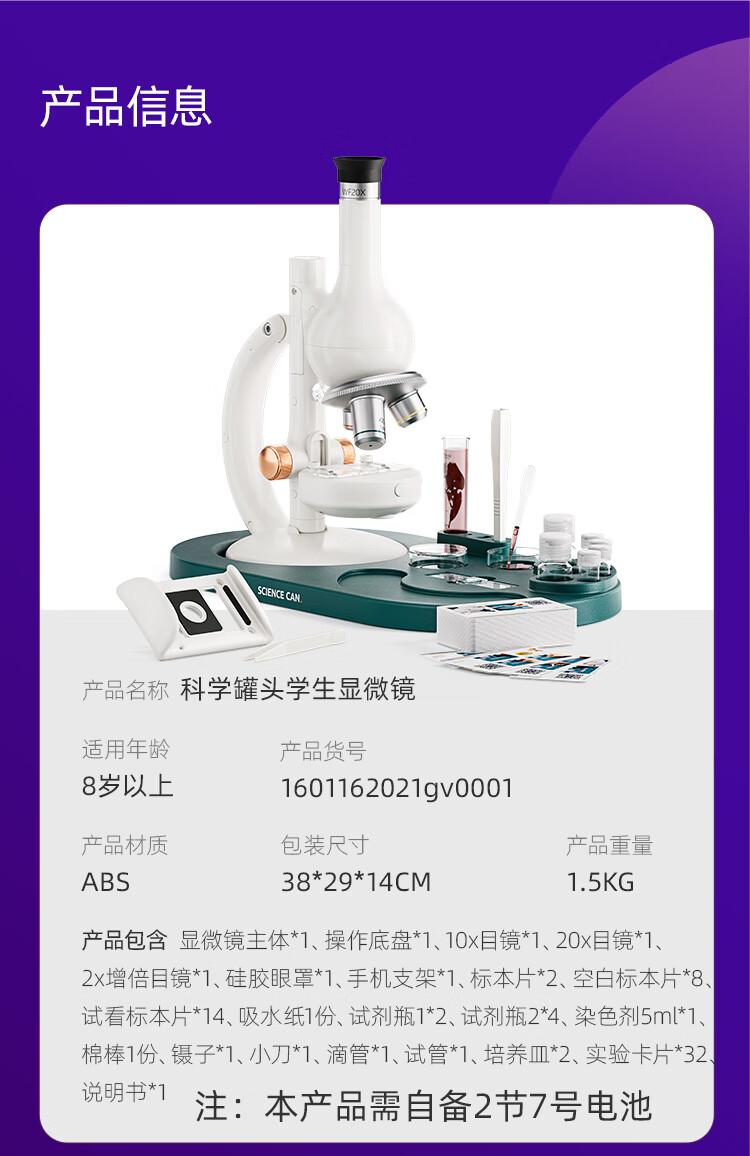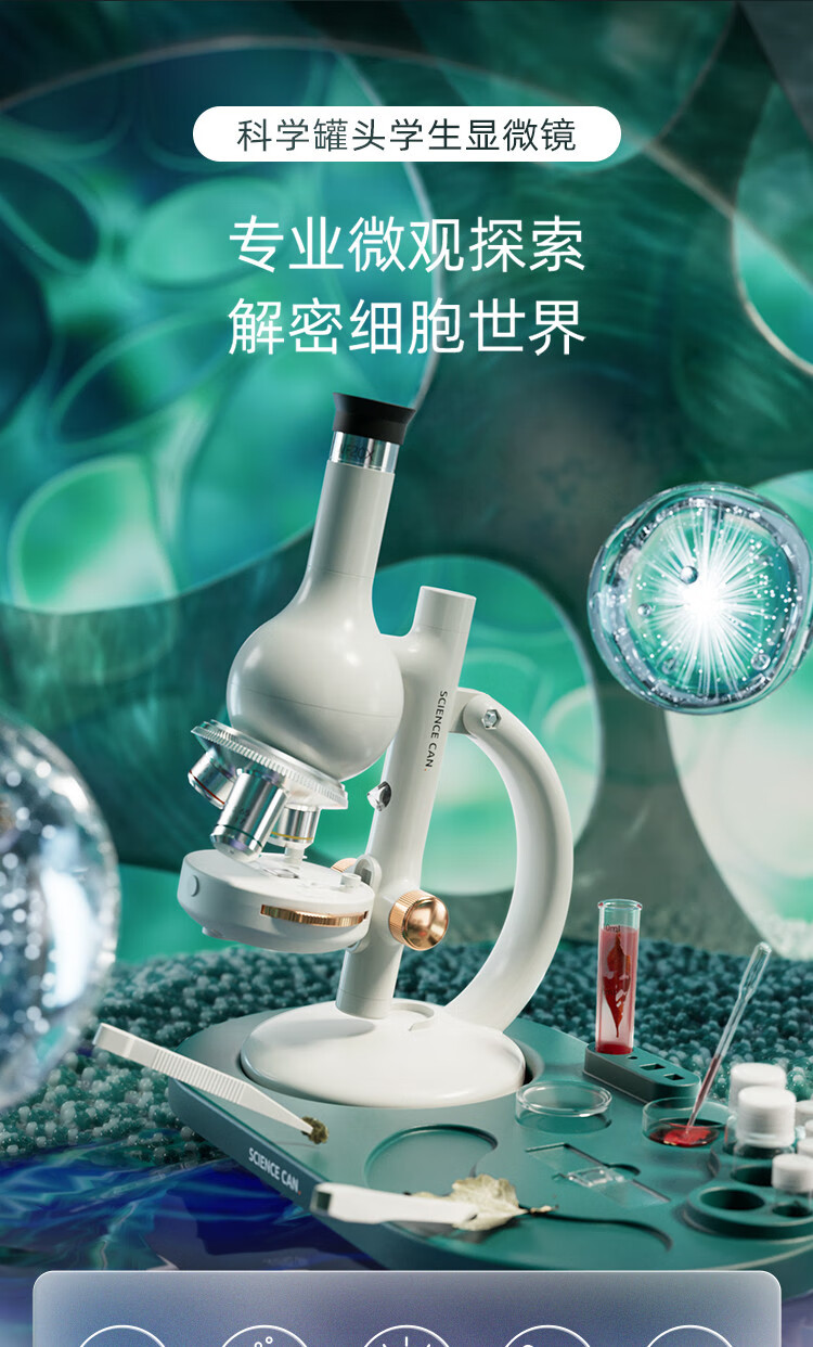 科学罐头(Sciencecan)学生显微镜儿童玩具立式高倍学