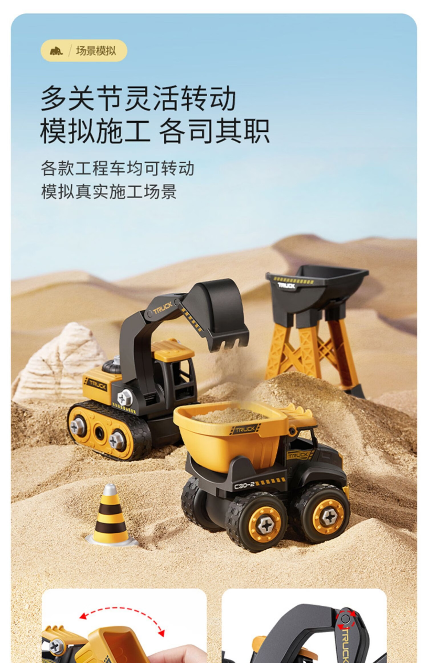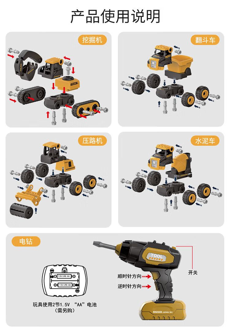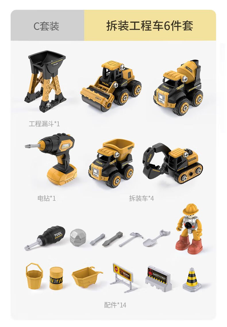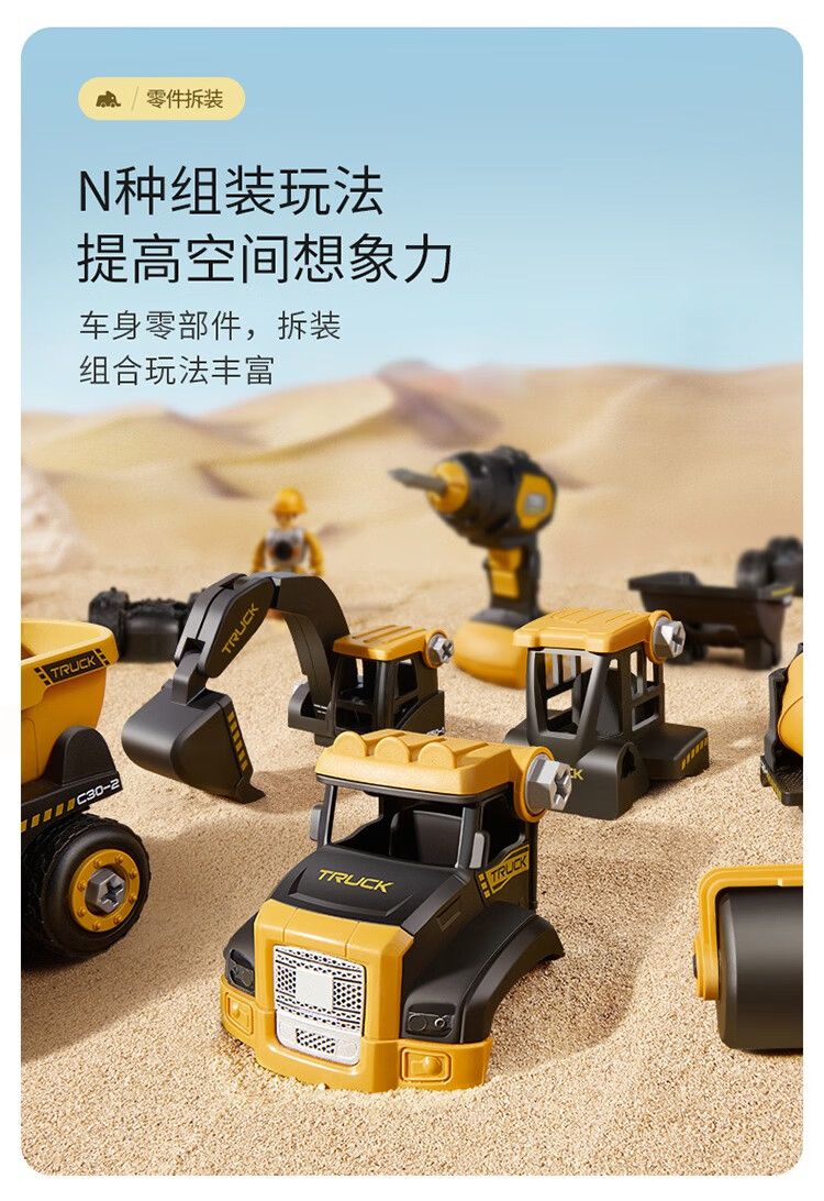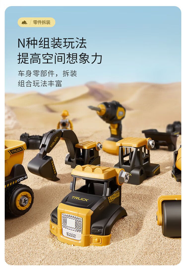 梦多福2岁男孩玩具圣诞节礼物儿童拆装工程车拧螺丝生日礼物挖掘