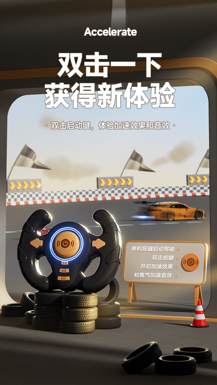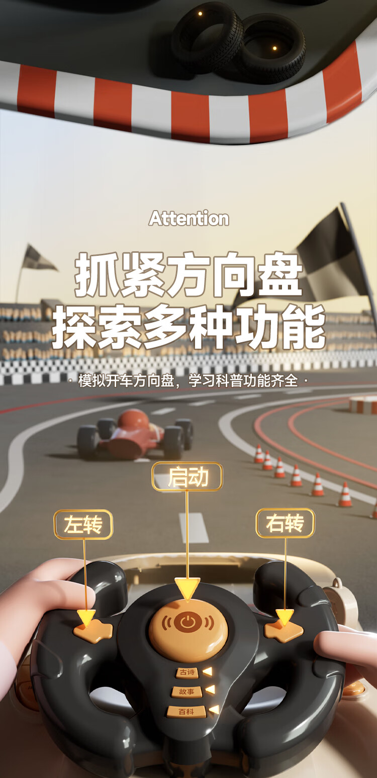 淘嘟嘟(Taodudu)儿童玩具赛车汽车闯关大冒险方向盘模拟