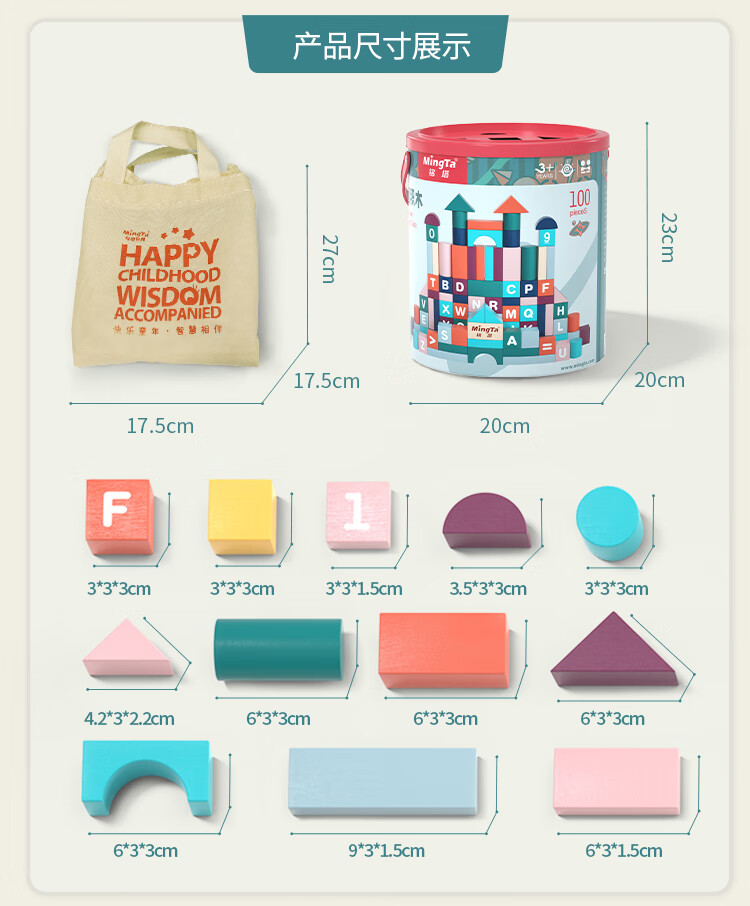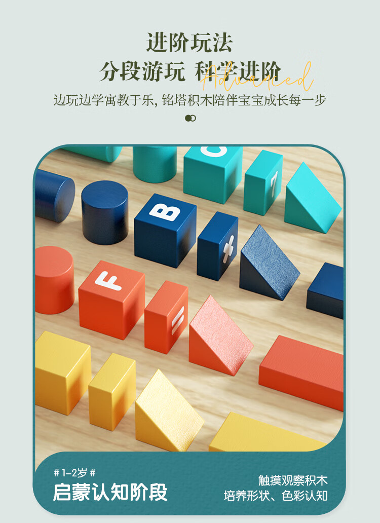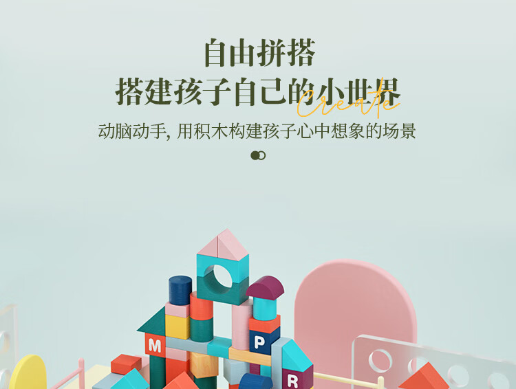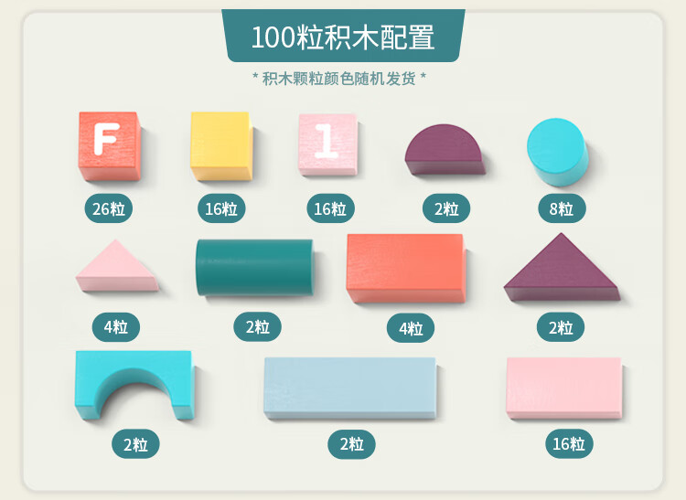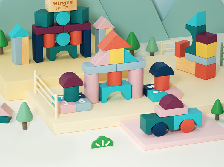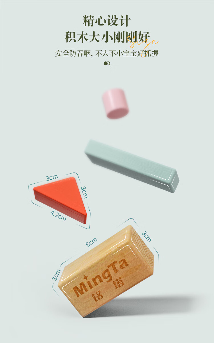 铭塔100粒莫兰迪积木儿童玩具木头木制质拼装拼图男孩女孩大颗