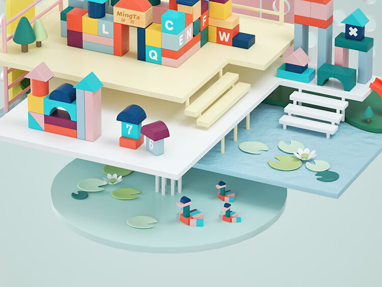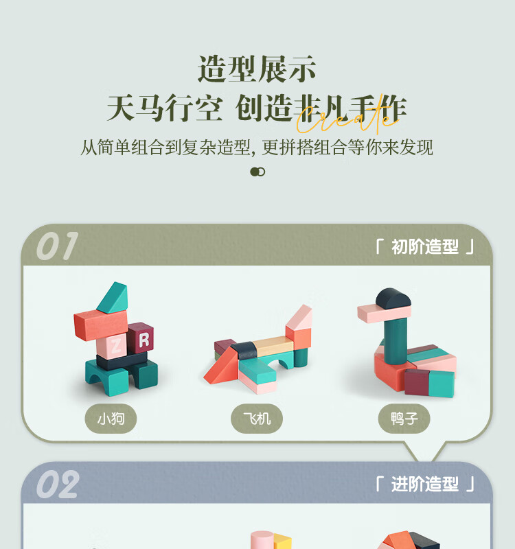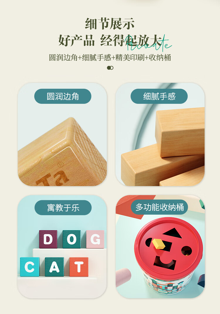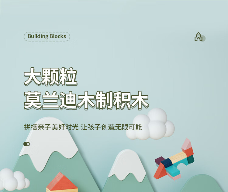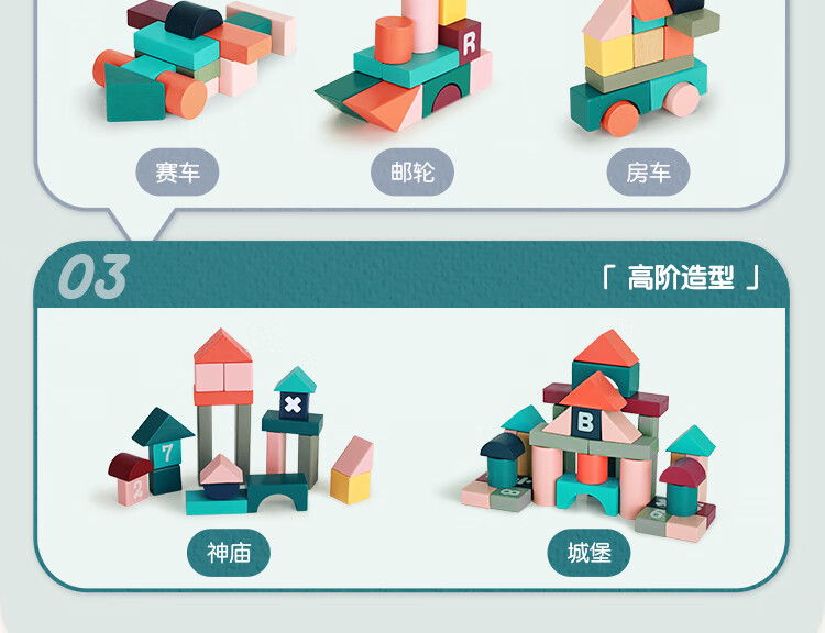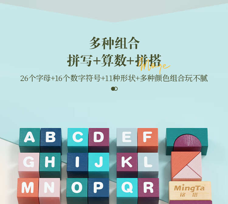 铭塔100粒莫兰迪积木儿童玩具木头木制质拼装拼图男孩女孩大颗