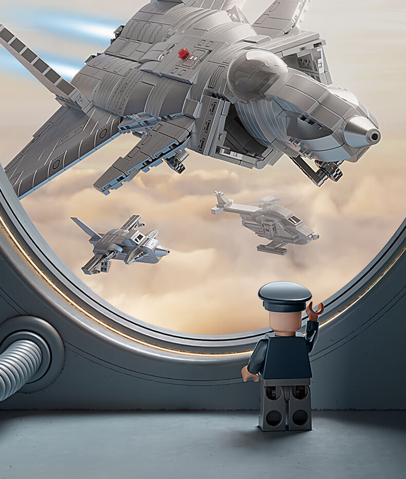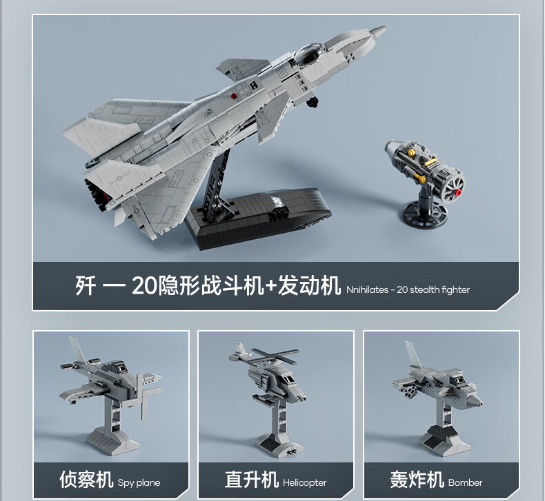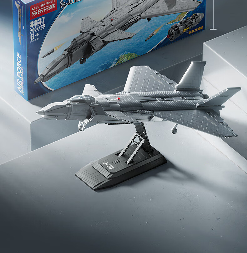 尚韵儿童歼20战斗机积木拼装玩具男孩高难度军事飞机拼图模型生