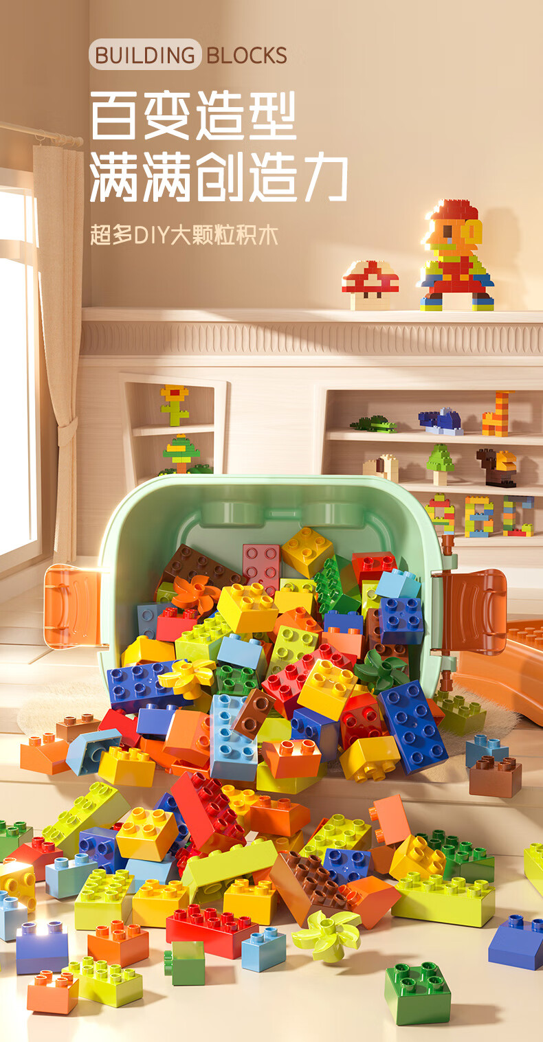 斯纳恩大颗粒积木儿童玩具男女孩拼装插装桶乐diy3-8岁高宝