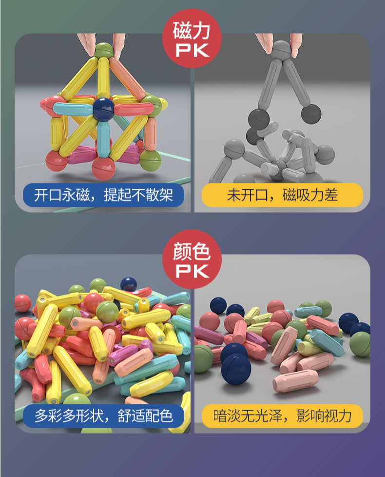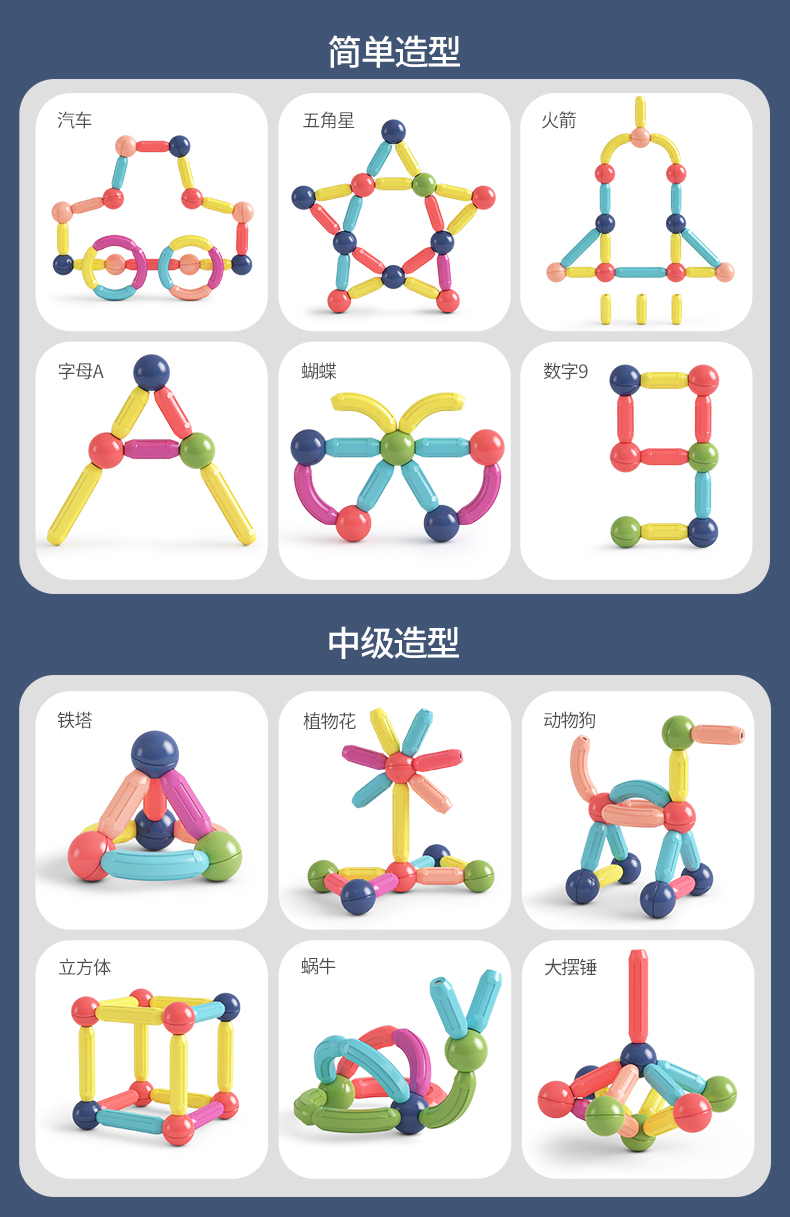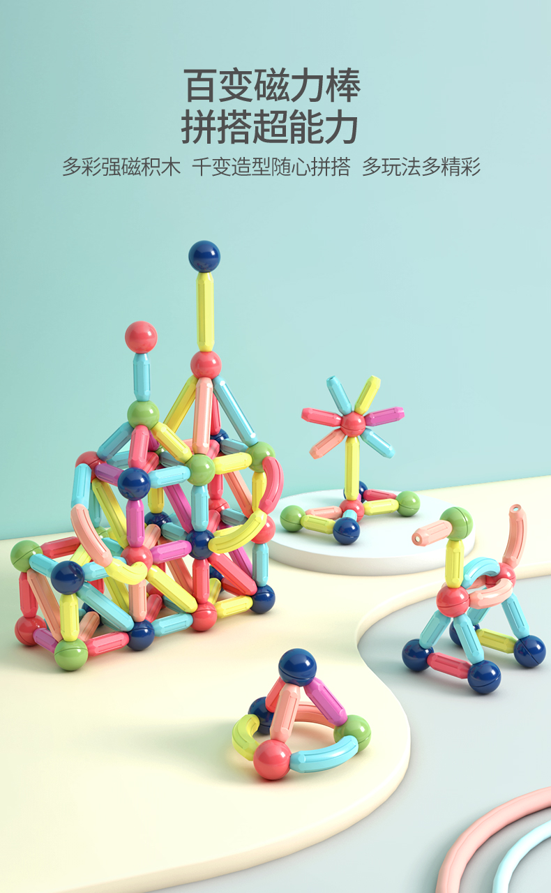 星涯优品纯72件套磁力棒儿童玩具磁力片大颗粒积木拼插3-6岁