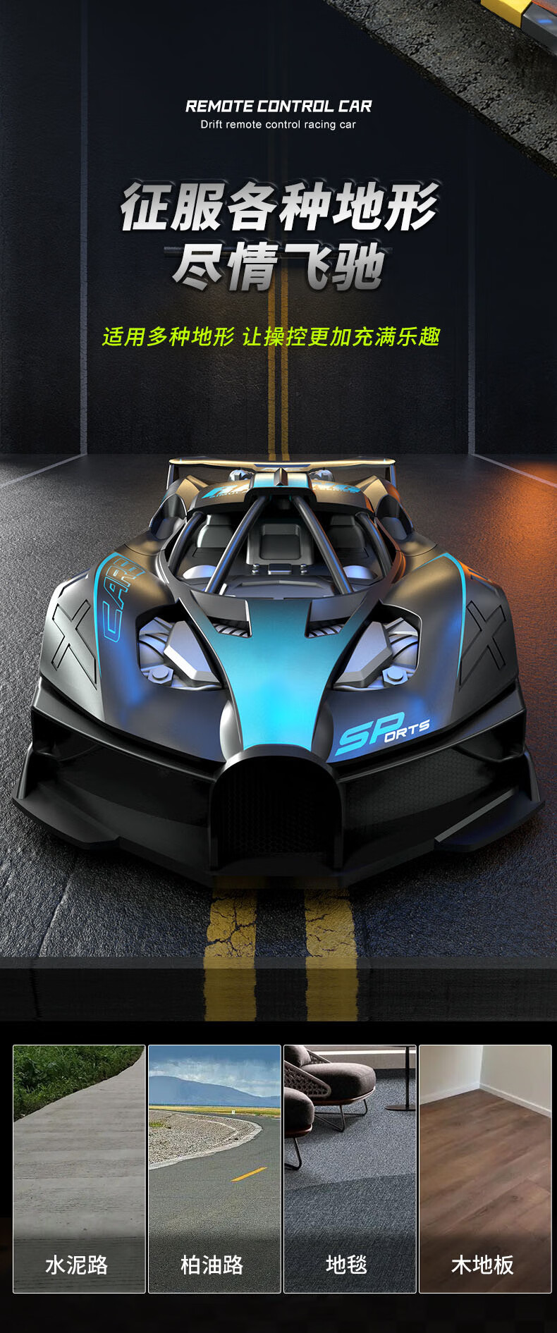 恬爱宝遥控汽车RC儿童玩具男孩布加迪跑车电动遥控赛车模型男孩