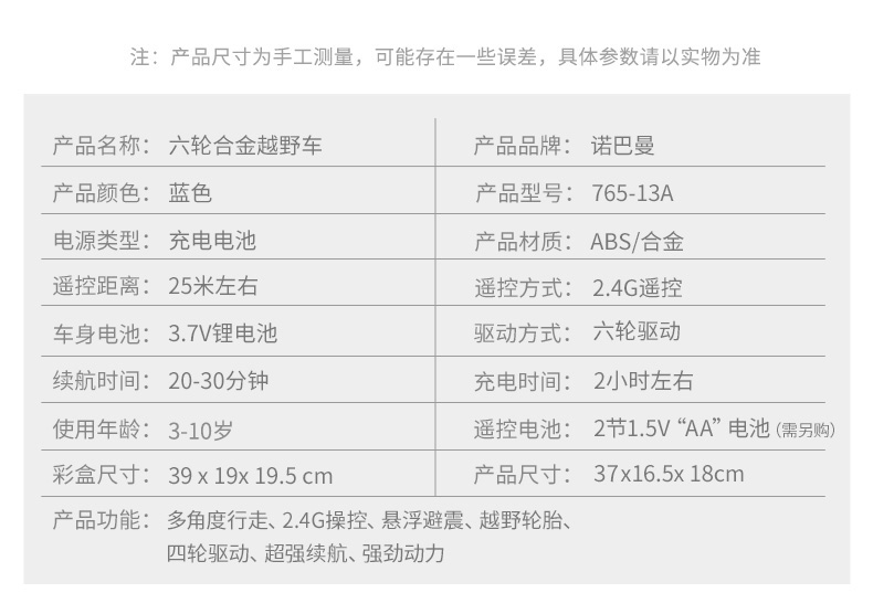 诺巴曼合金越野车六驱rc遥控车儿童玩具车小孩男孩遥控汽车赛车