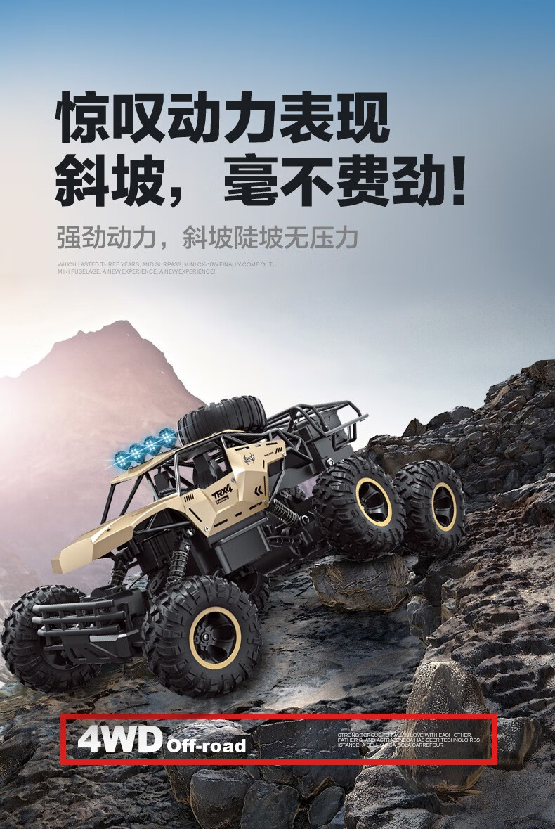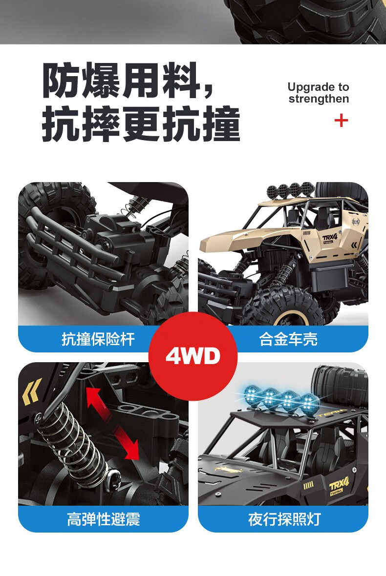 鲁咔贝卡超大合金遥控汽车玩具男孩四驱越野车漂移大脚攀爬儿童生