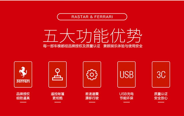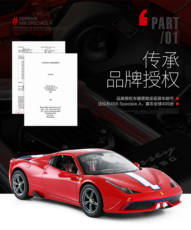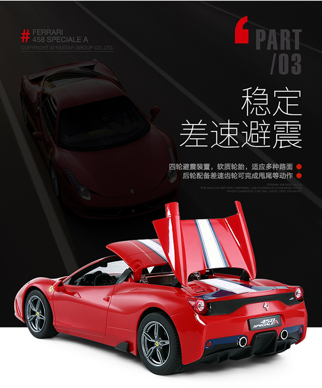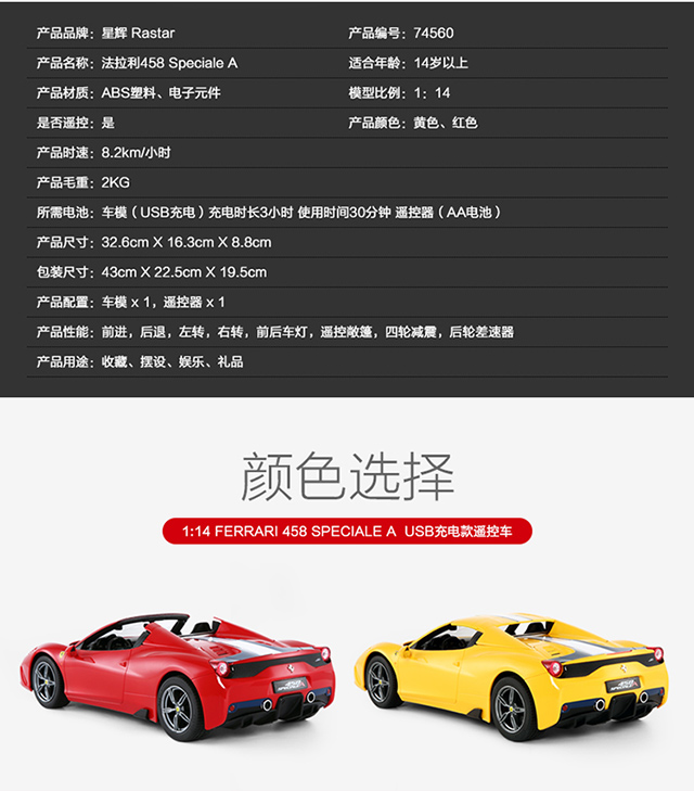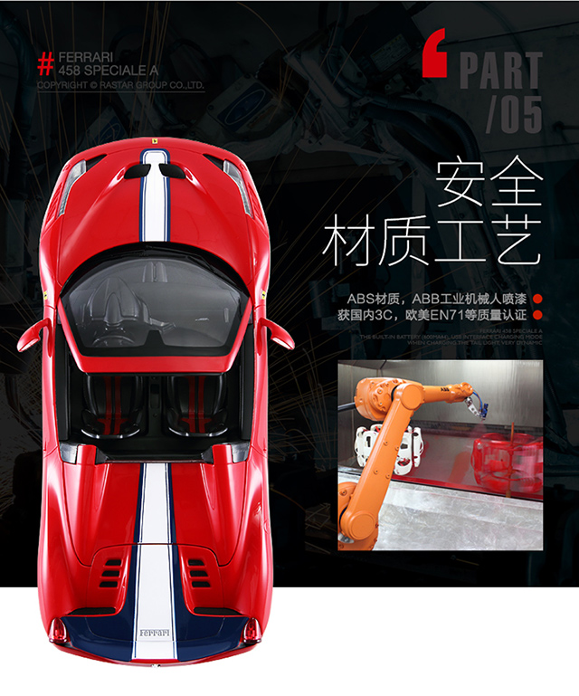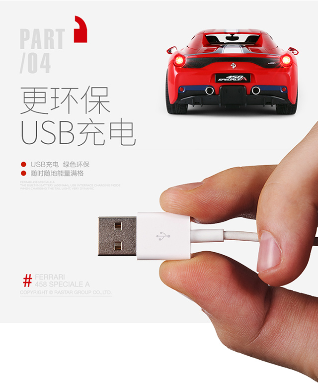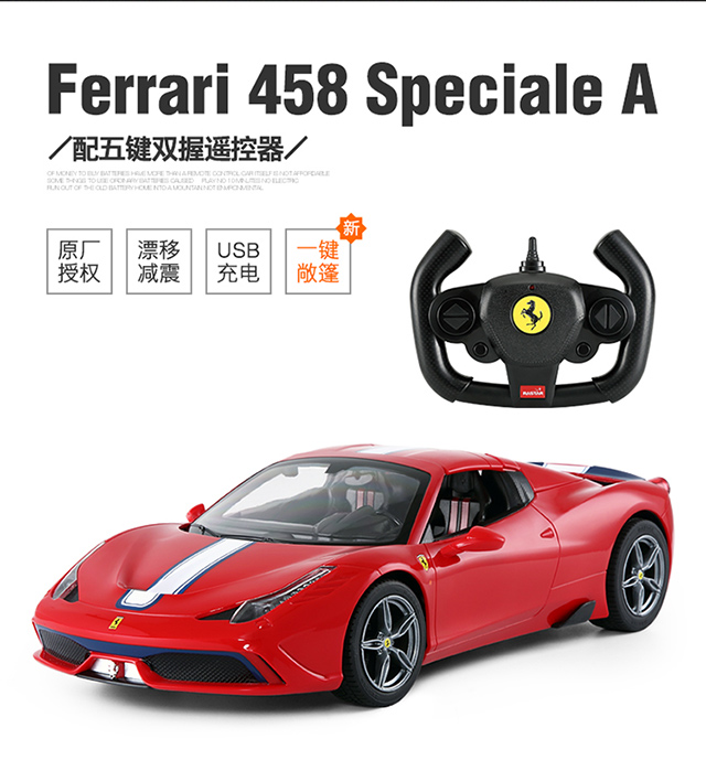 星辉男孩玩具遥控车法拉利458跑车模型USB充电电池敞篷可漂