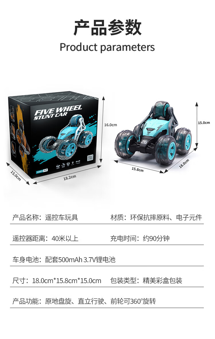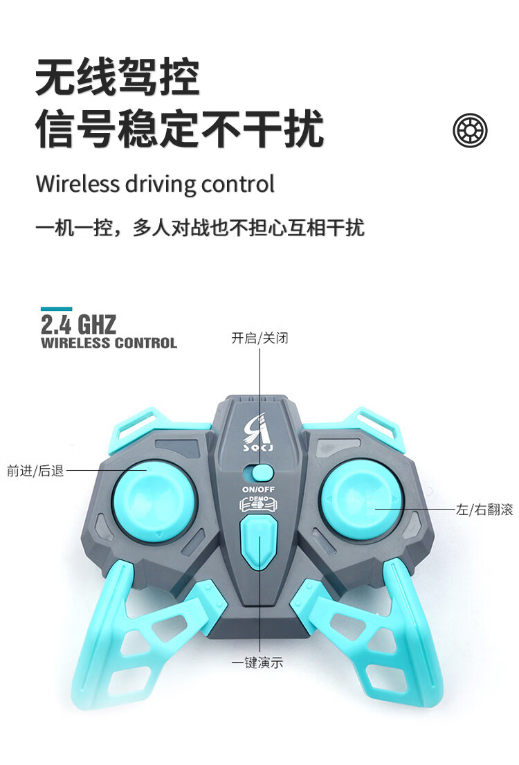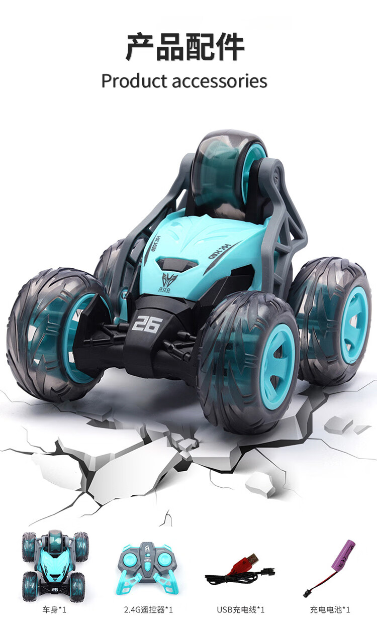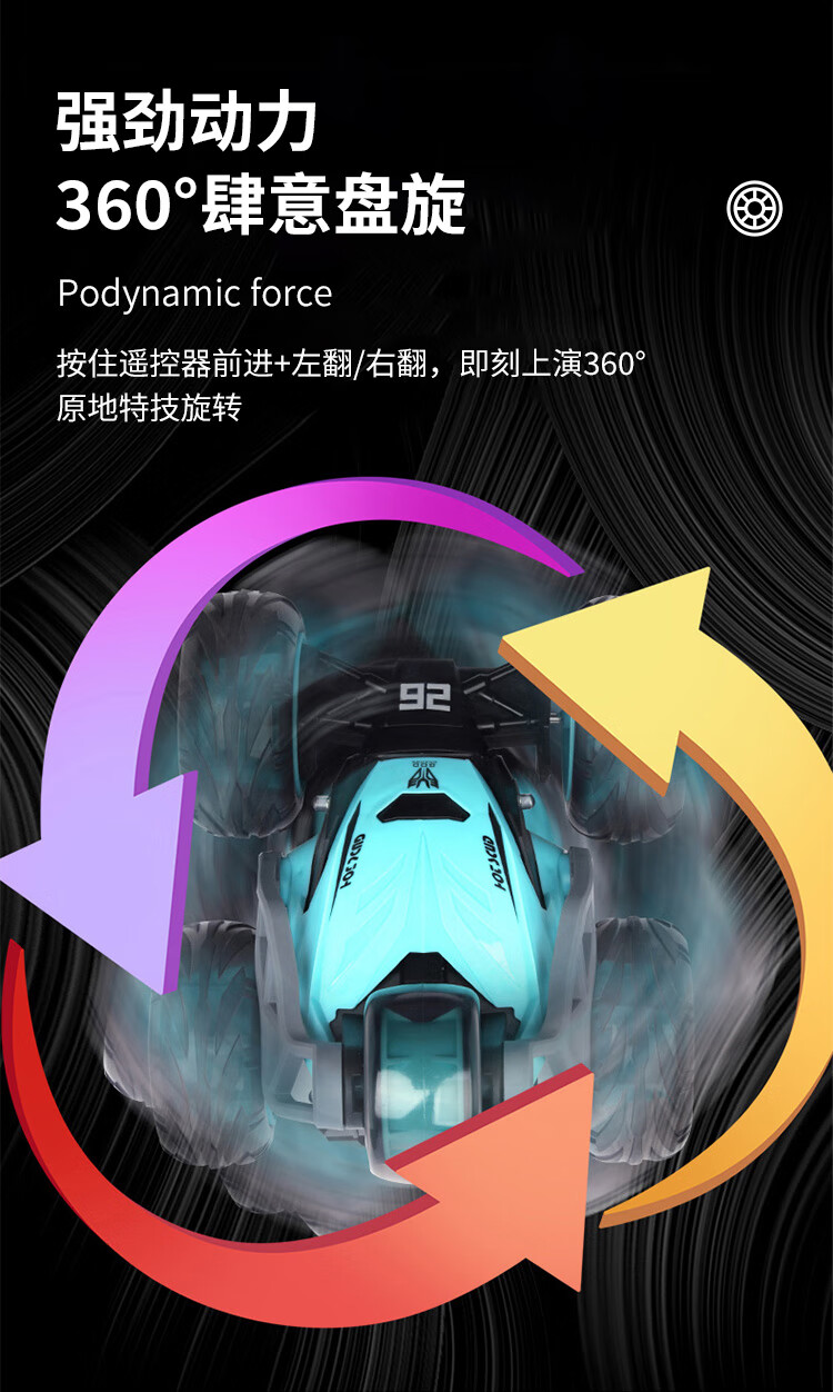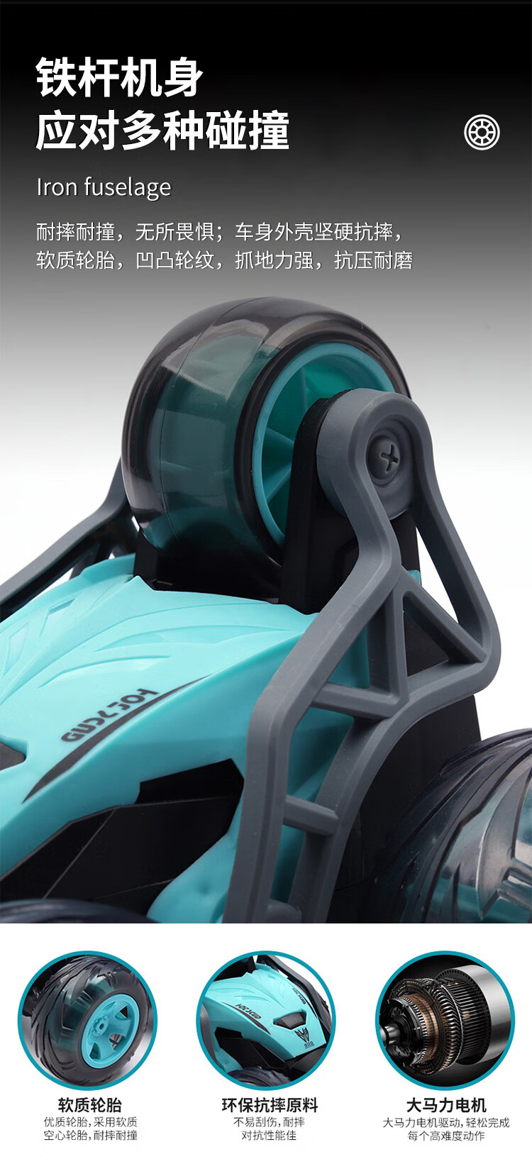 易简(yijan)儿童遥控汽车翻滚特技车360度翻斗电动越野