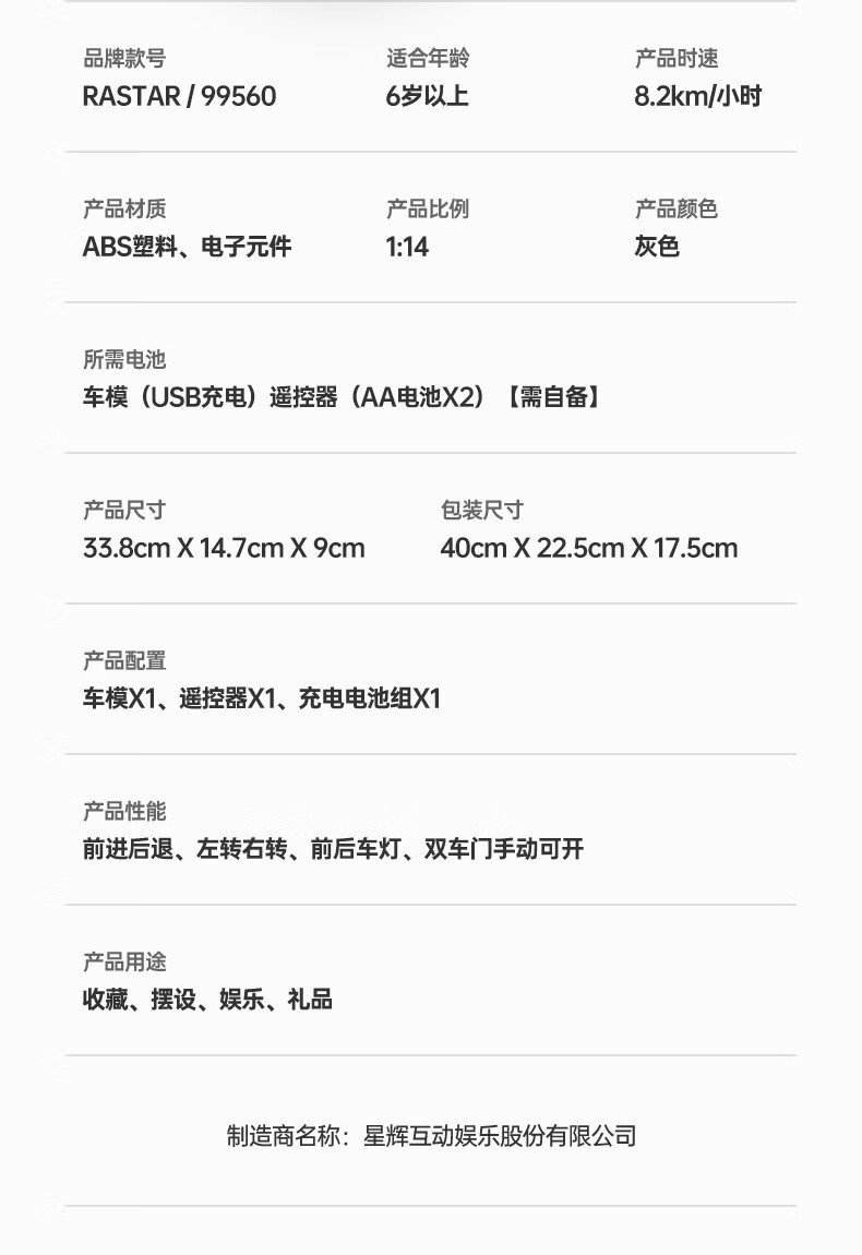 星辉(Rastar)保时捷1:14911GT2RS遥控汽车U
