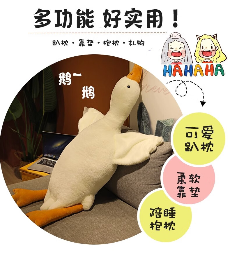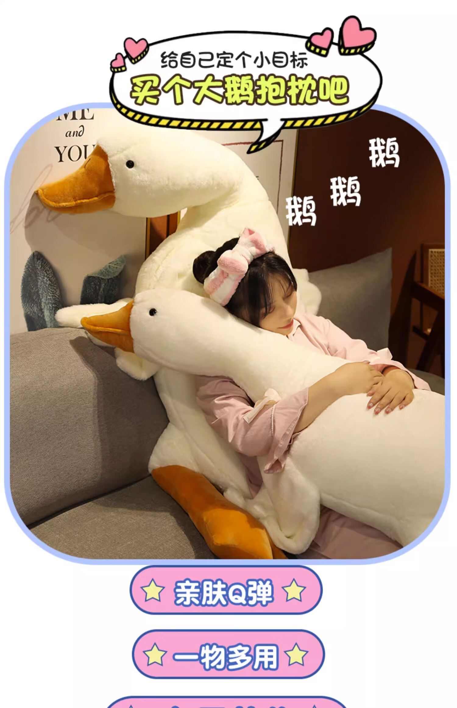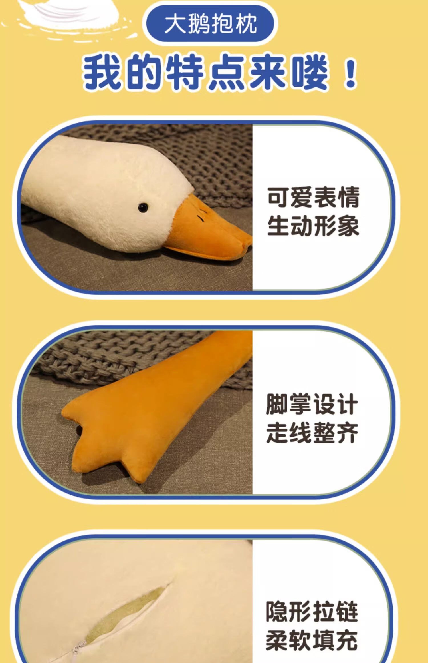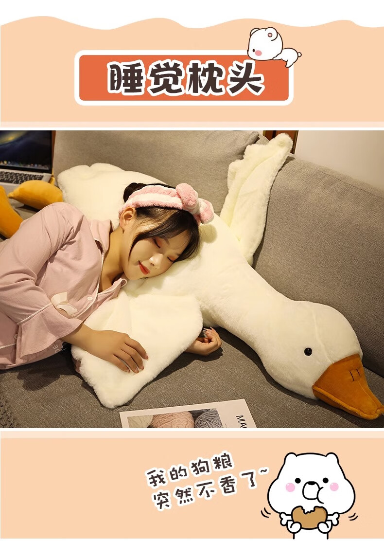 大白鹅睡觉抱枕公仔娃娃玩偶毛绒玩具女孩陪睡抱枕长条大号床上儿